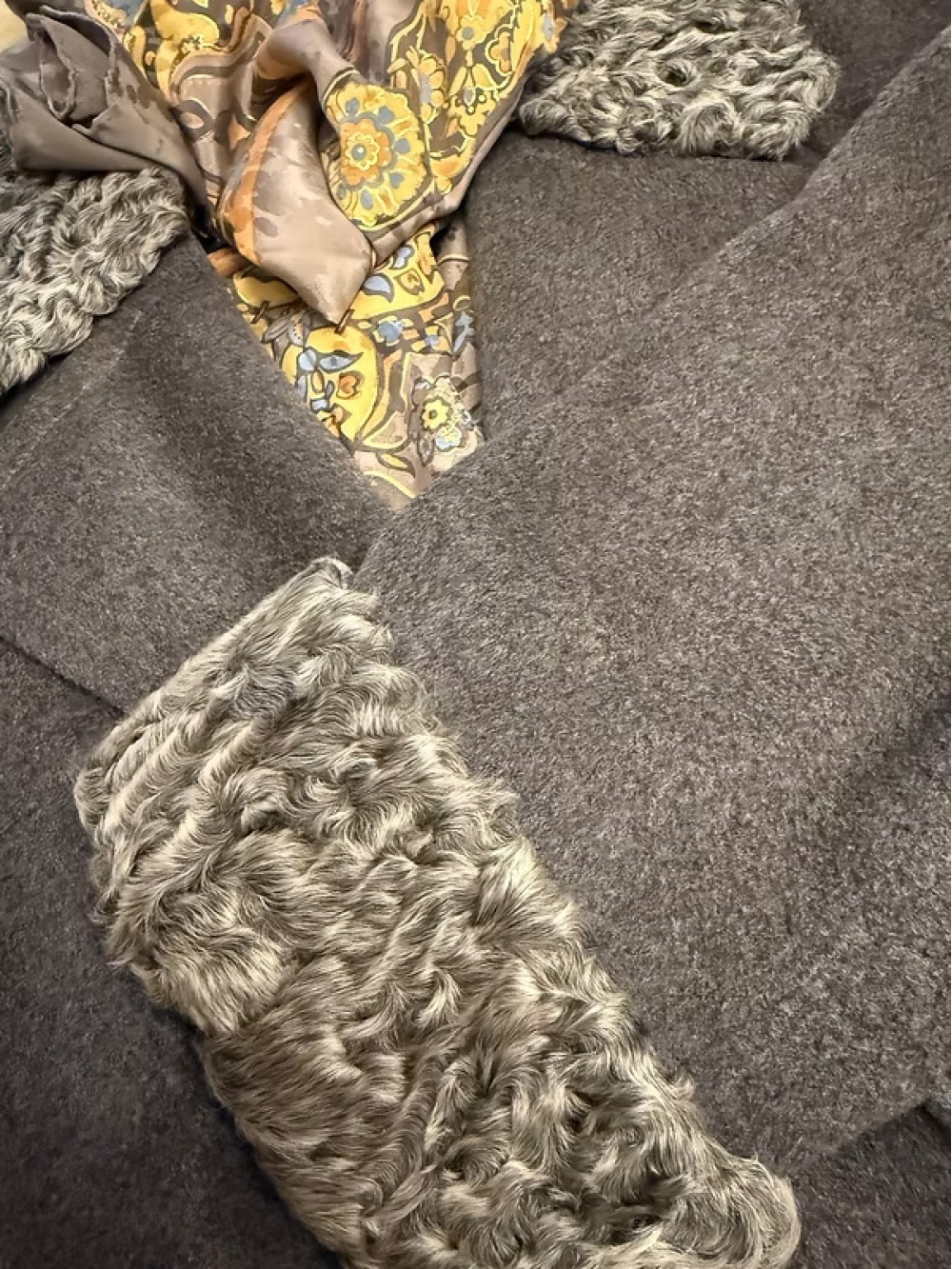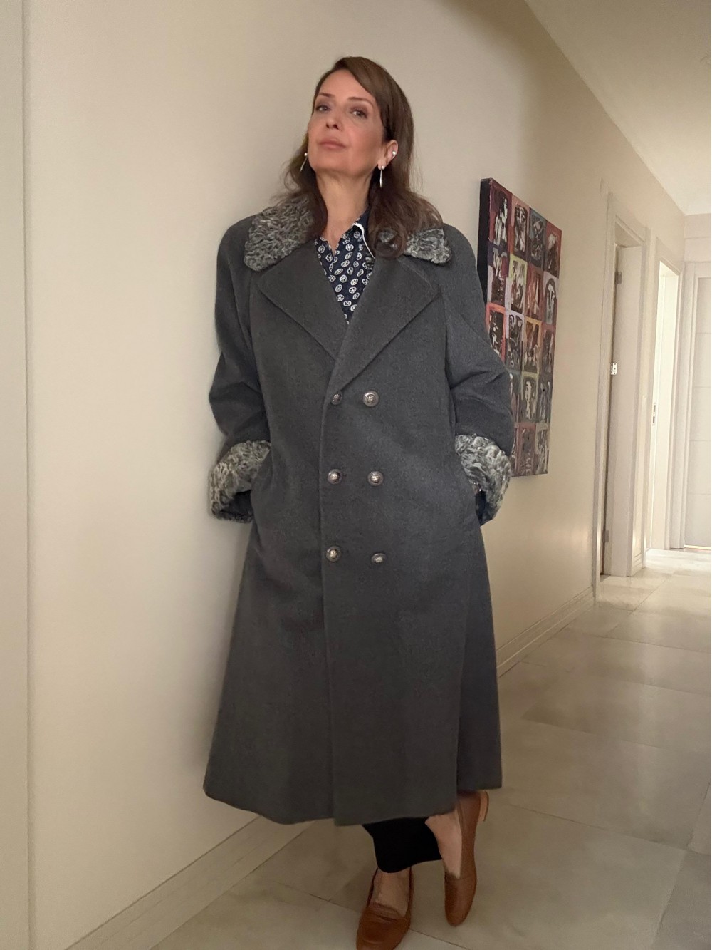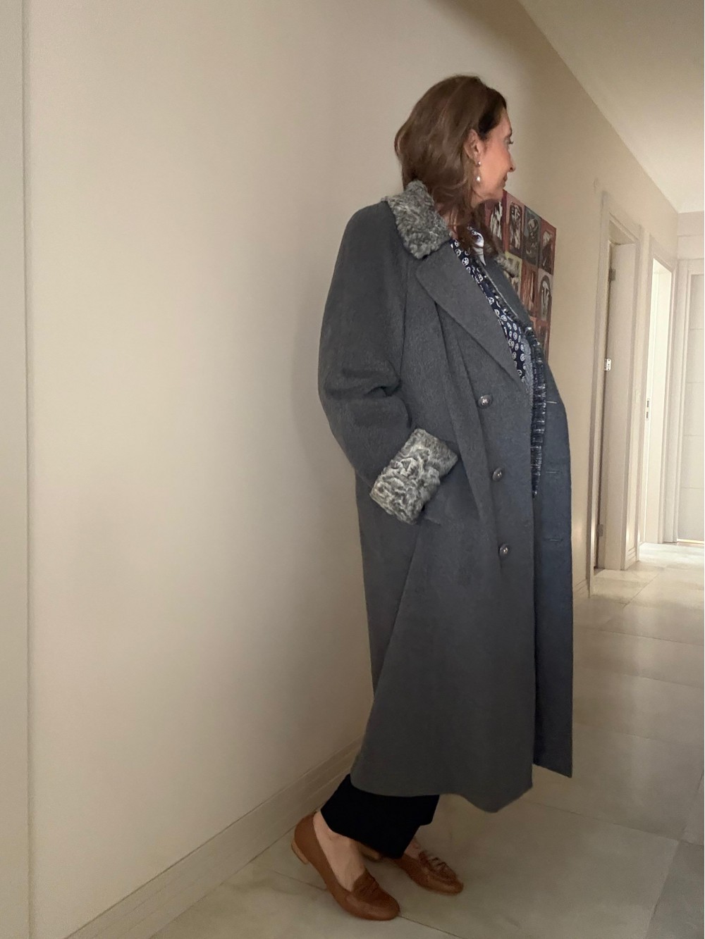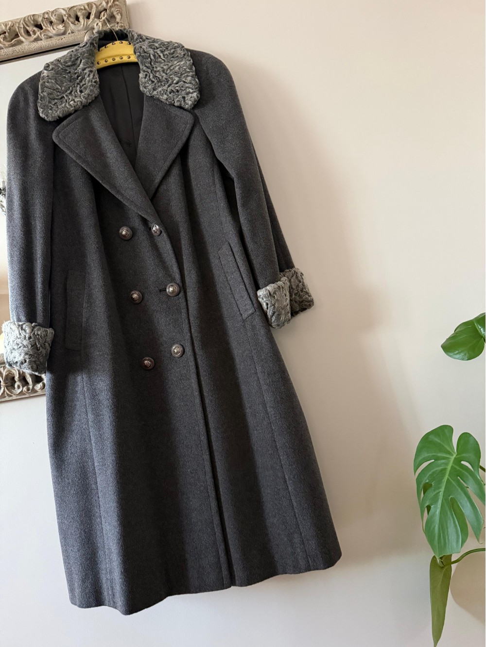 1980s Özel Dikim Yün-Kaşmir Gri Vintage Manto