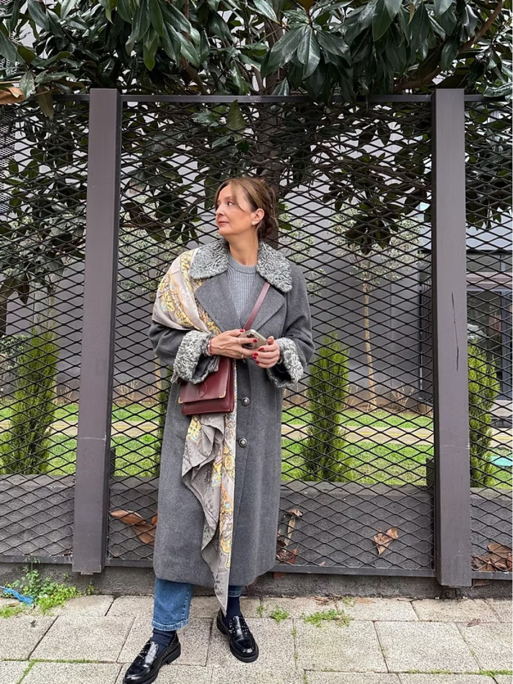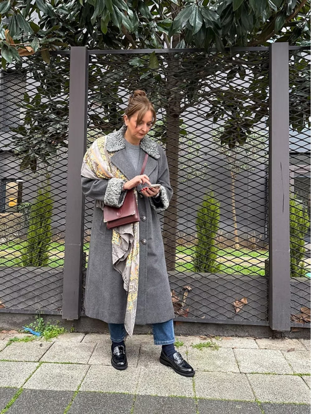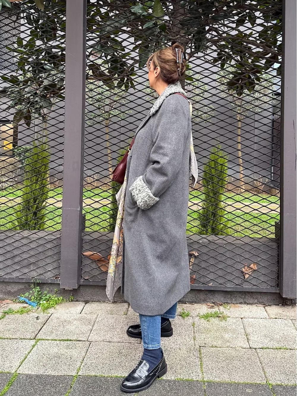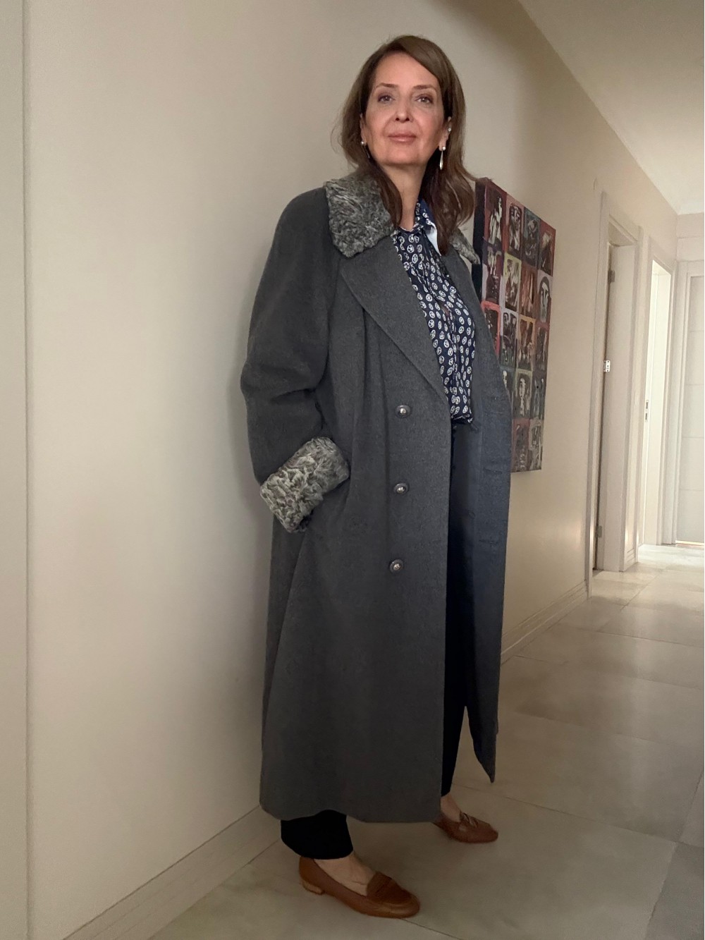 1980s Özel Dikim Yün-Kaşmir Gri Vintage Manto