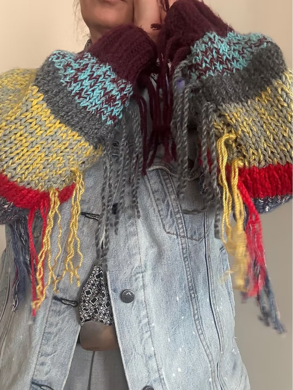 100% pamuk / Kolları triko püskül detaylı