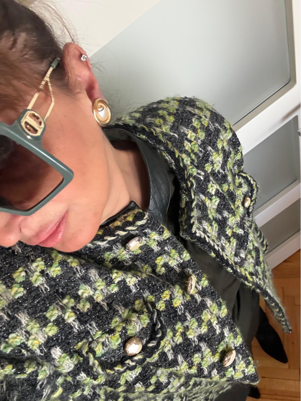 Vintage İnci Düğmeli Tüvit Oversize Ceket