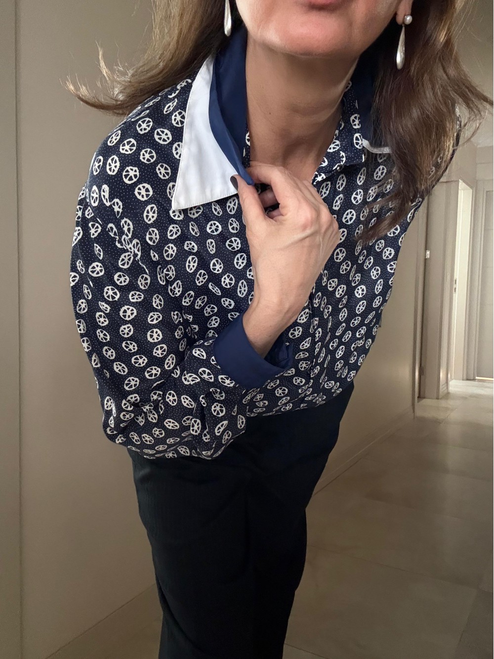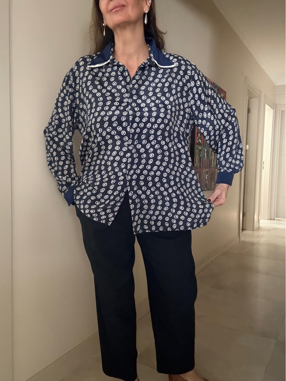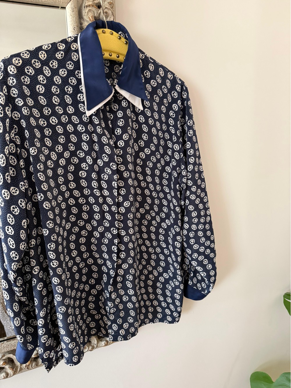 Vintage Çift Yakalı Lacivert-Beyaz Gömlek
