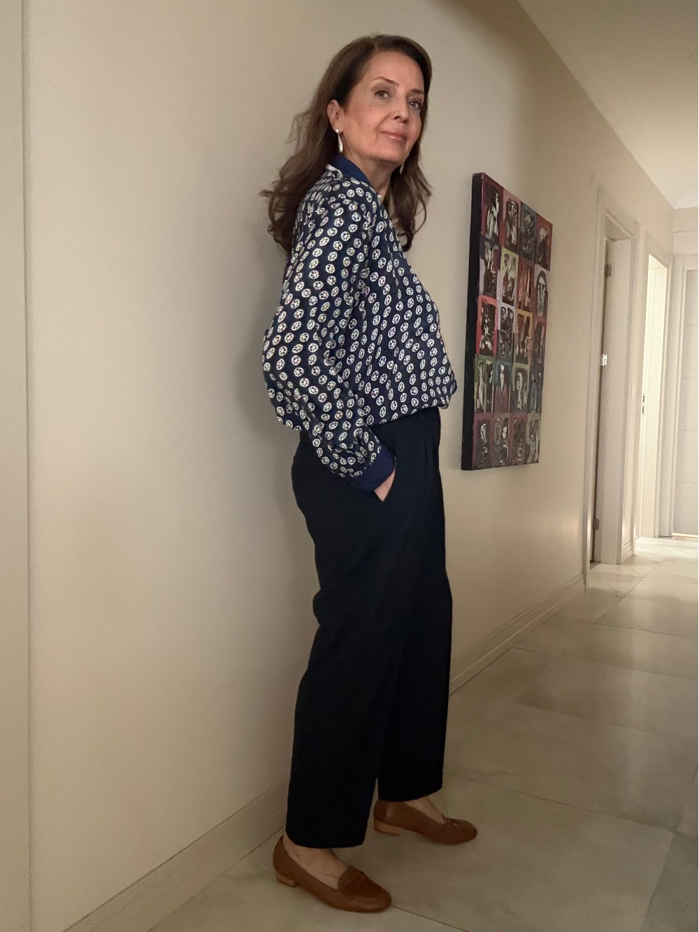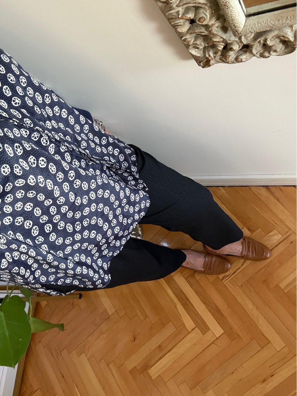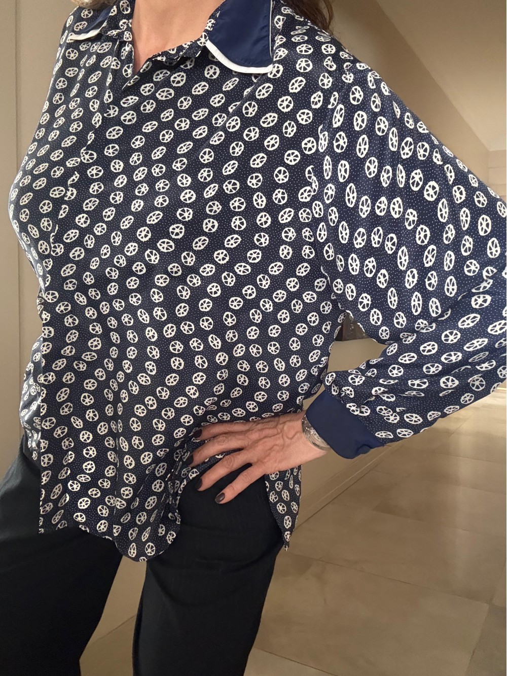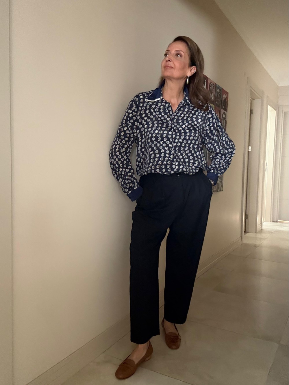 Vintage Çift Yakalı Lacivert-Beyaz Gömlek