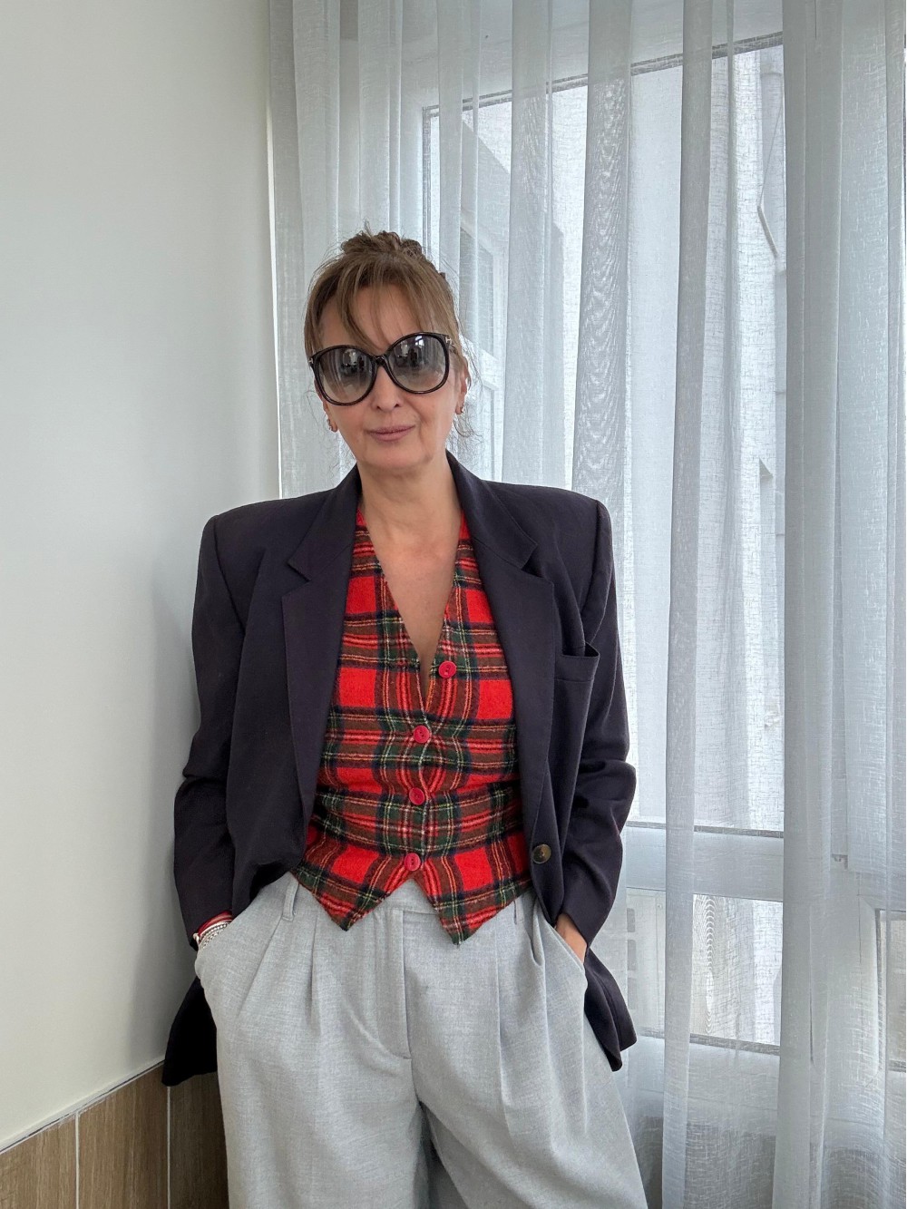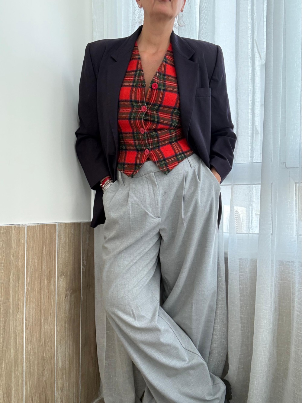 Vintage Kırmızı Tartan Made in Germany Yelek