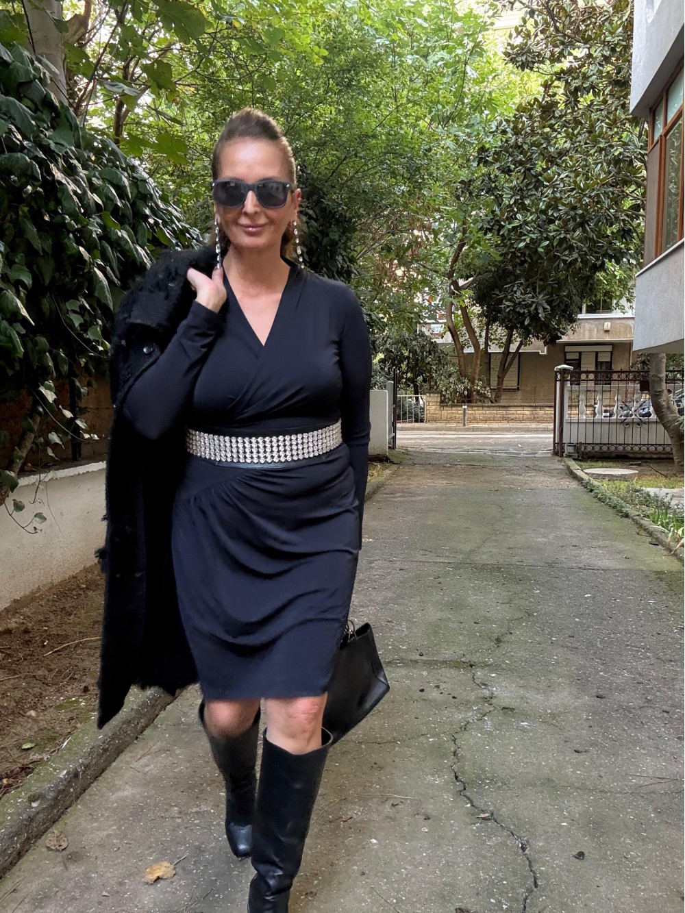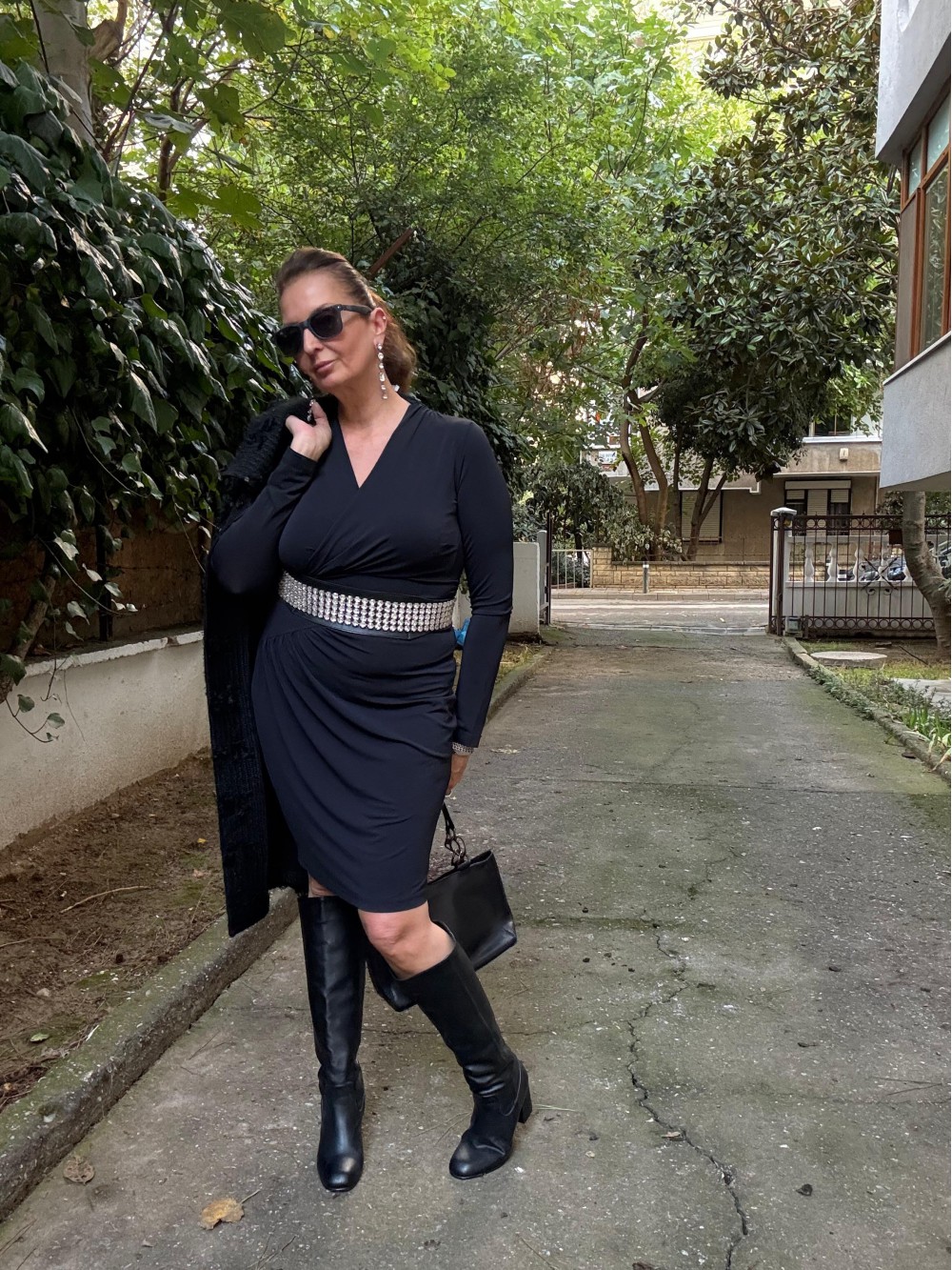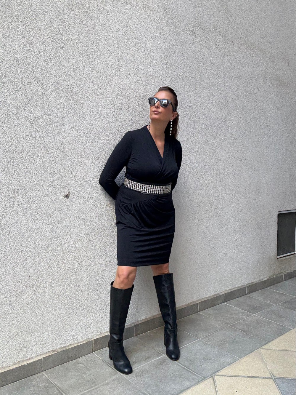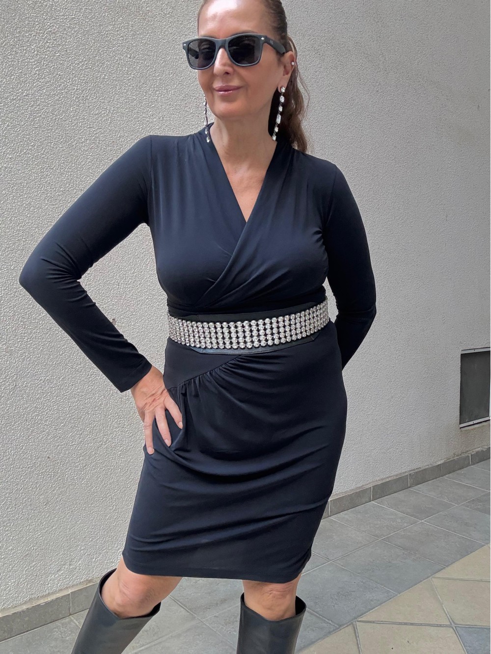 Vintage Siyah Jarse Made in Italy Elbise