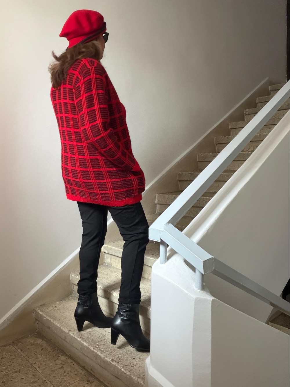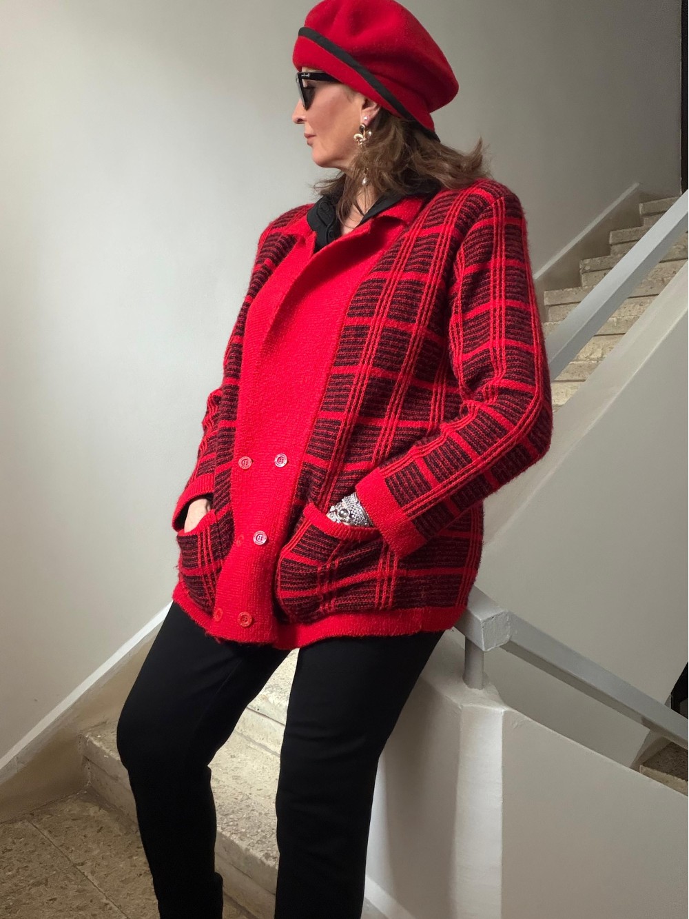 Vintage Kırmızı-Siyah Ekose Oversize Hırka