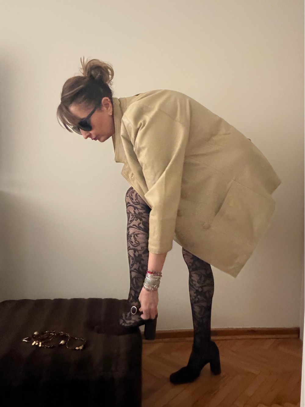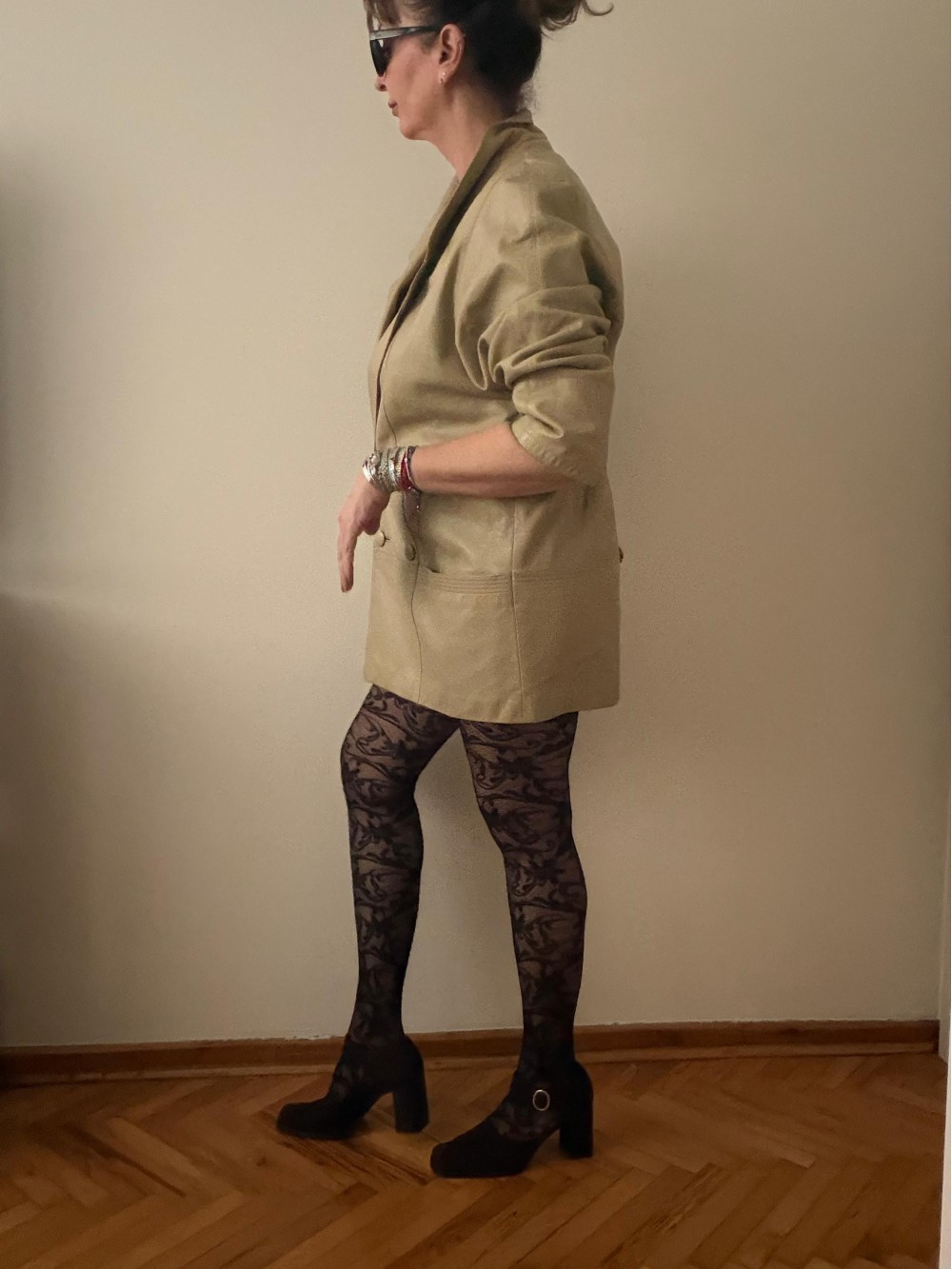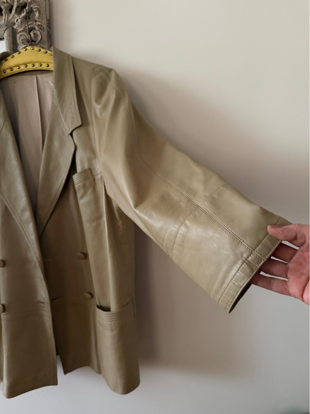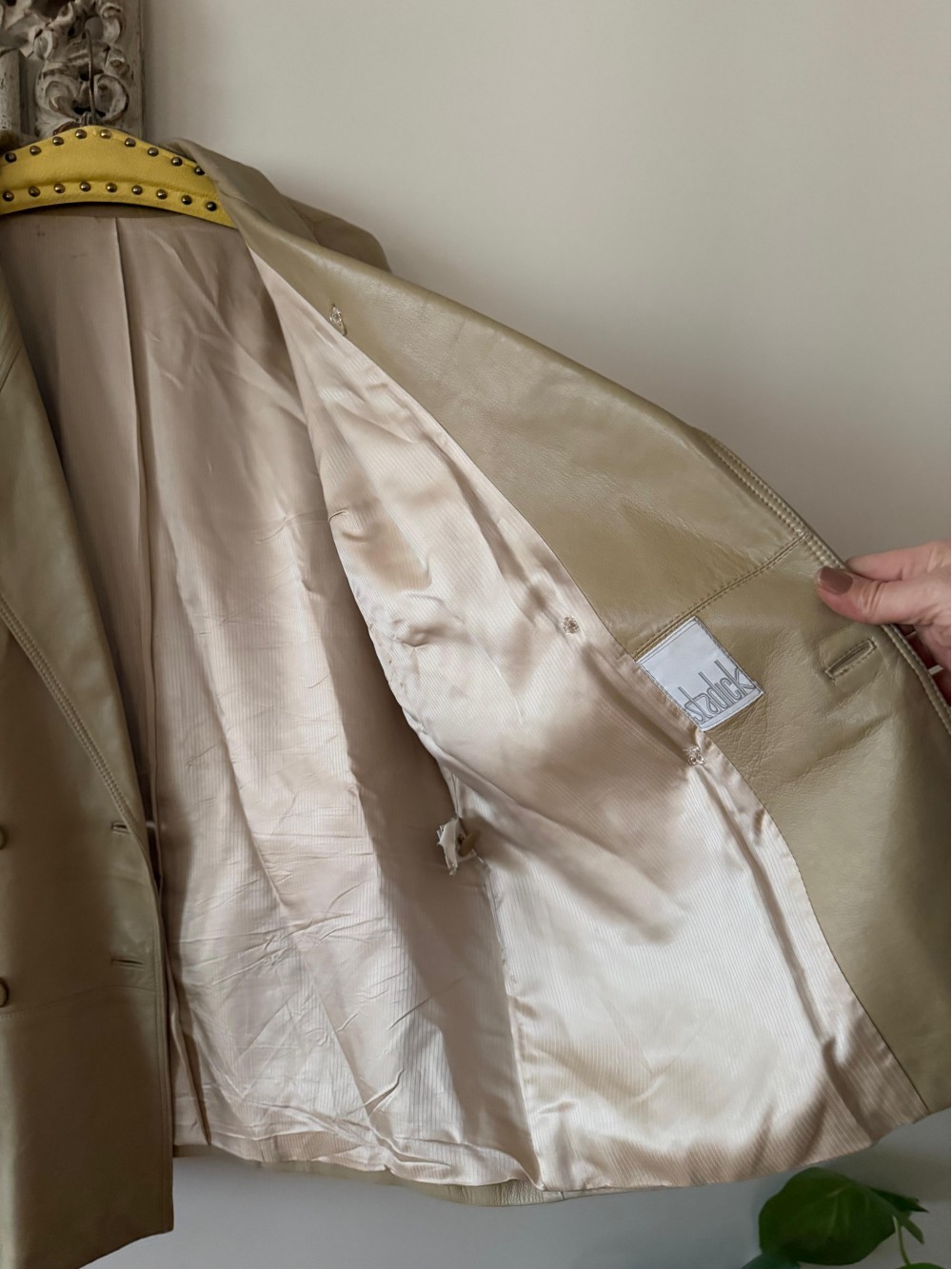 Vintage 80s Made in Germany Bej_Sarı Deri Ceket
