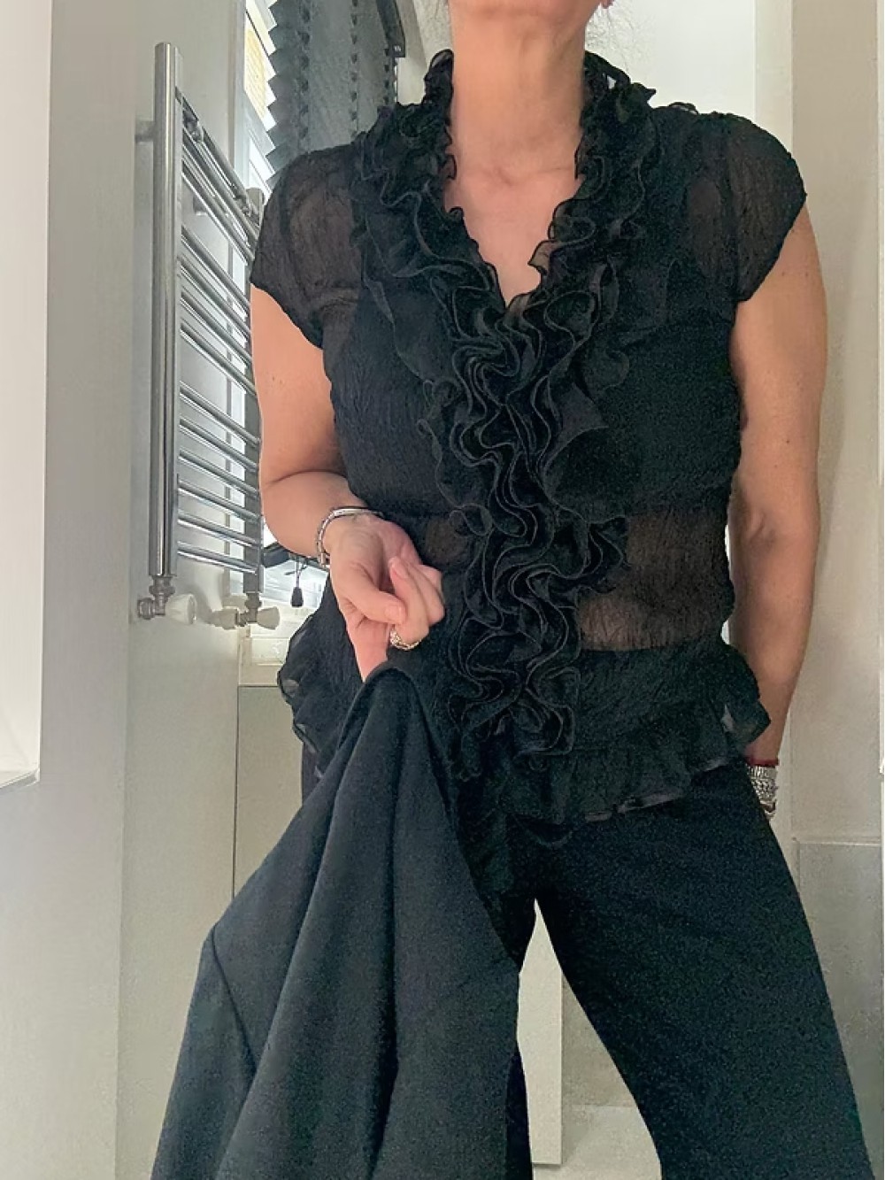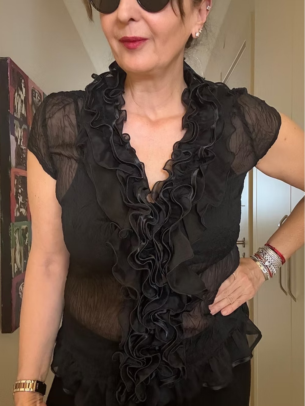 Vintage Fırfırlı Transparan Gömlek