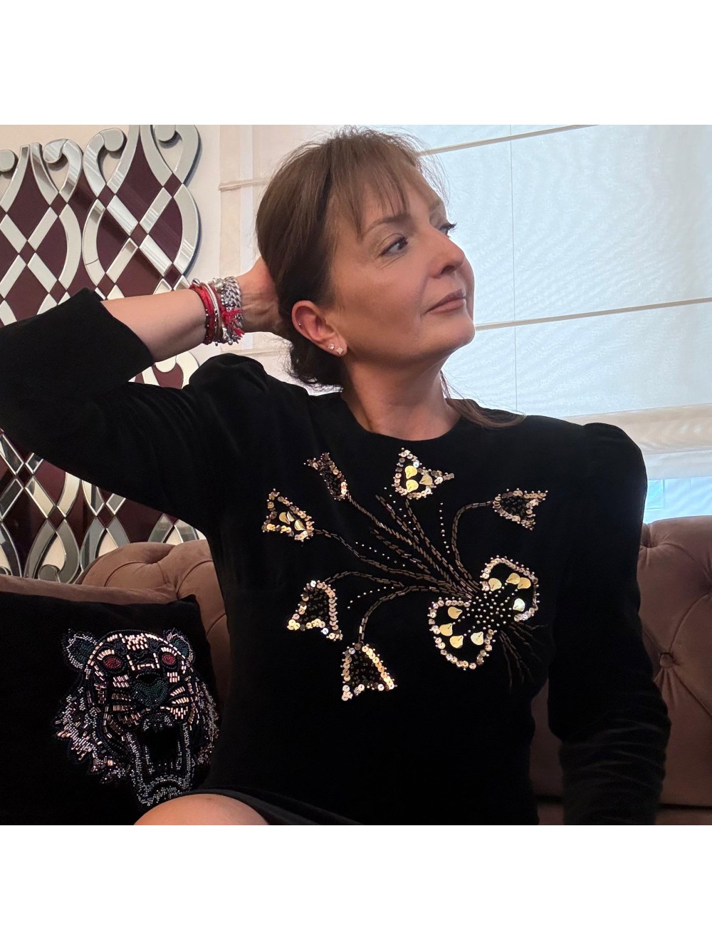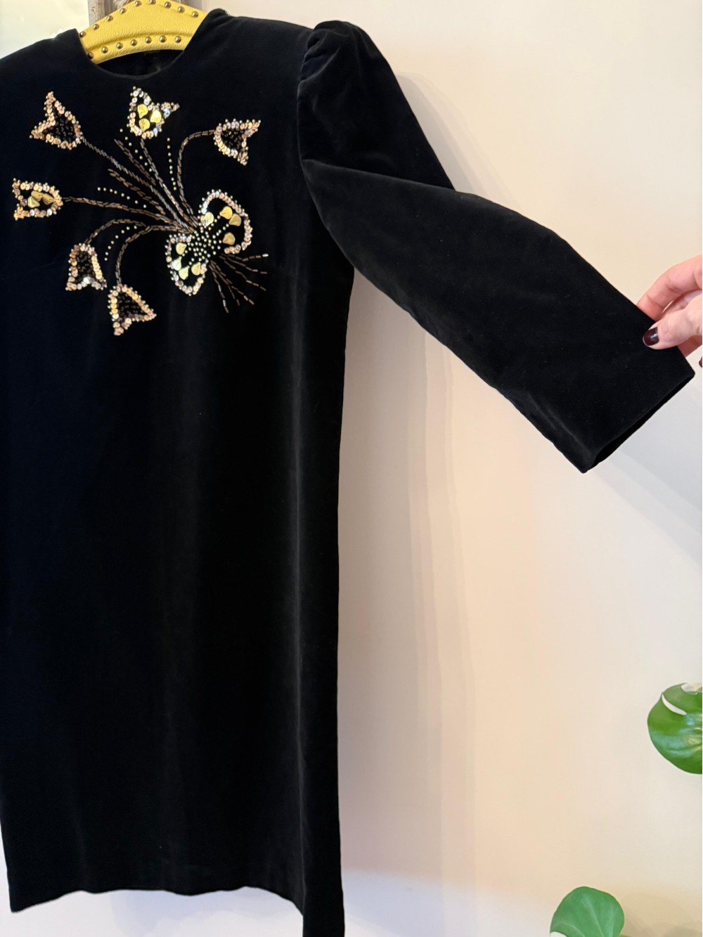 Vintage Pul İşlemeli Kadife Elbise