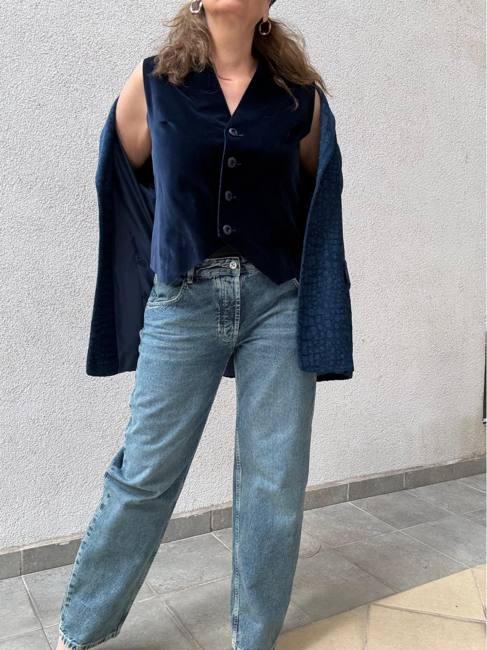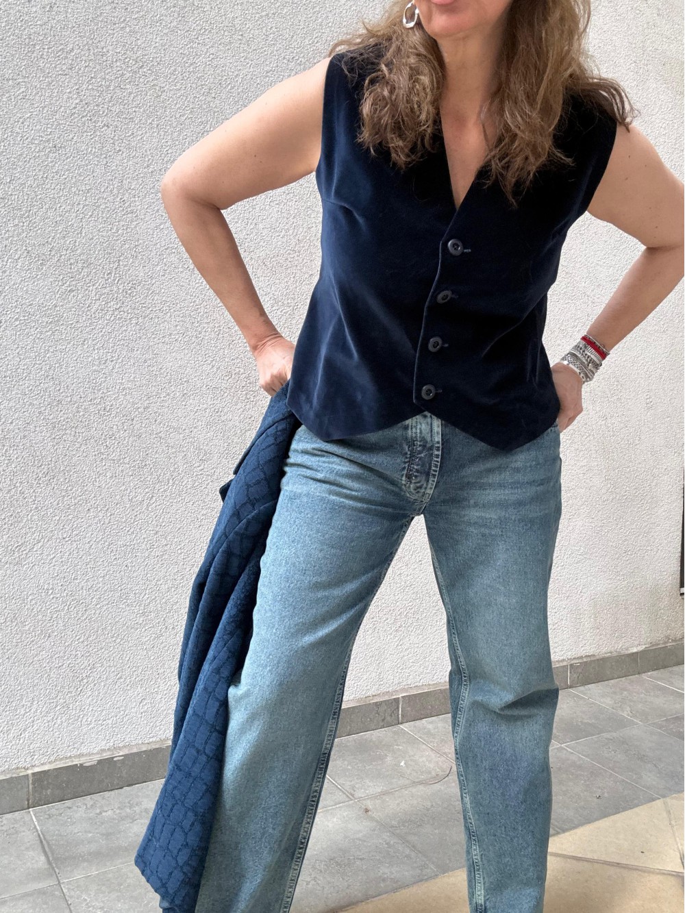 Vintage Lacivert Kadife Yelek