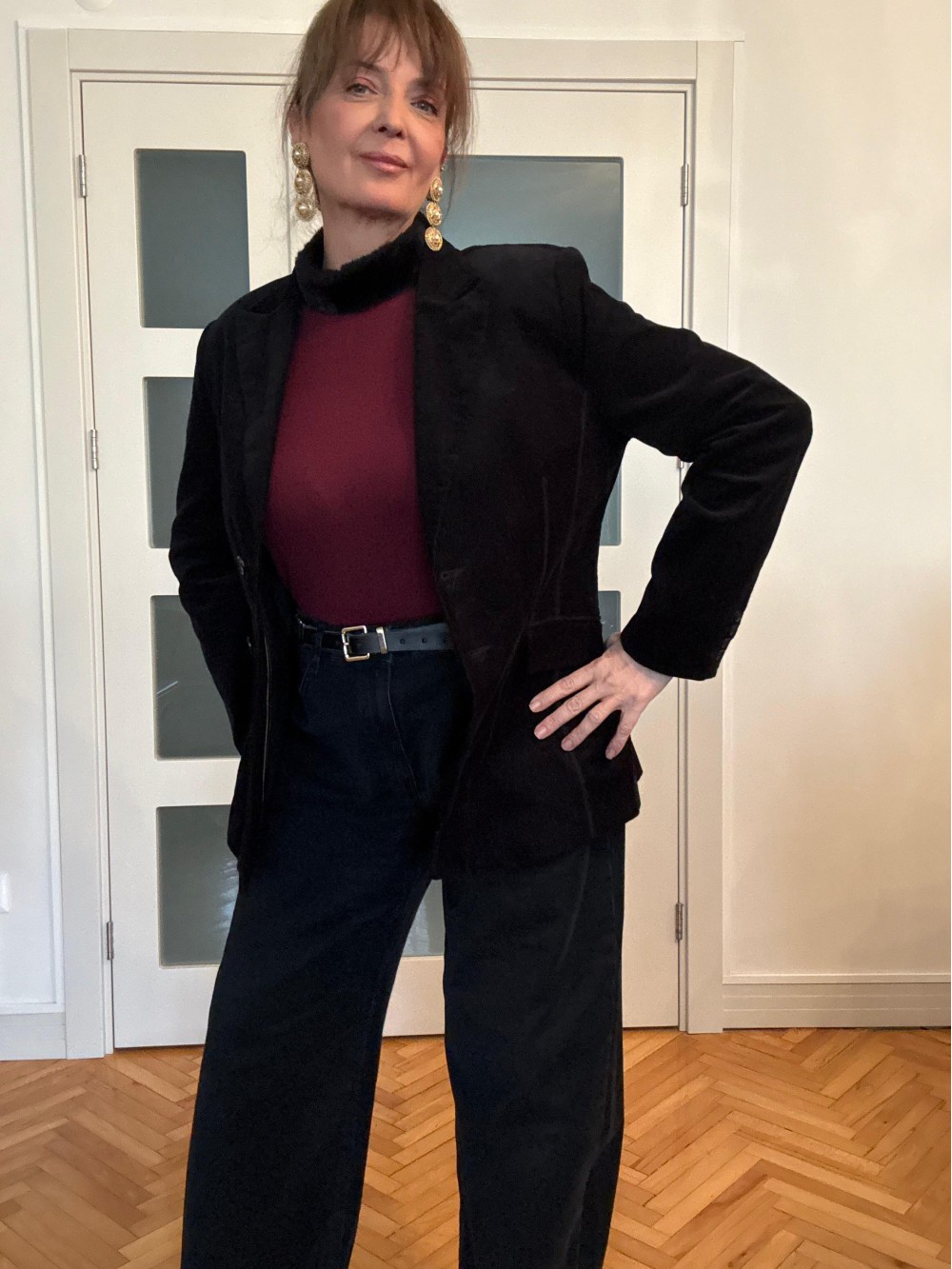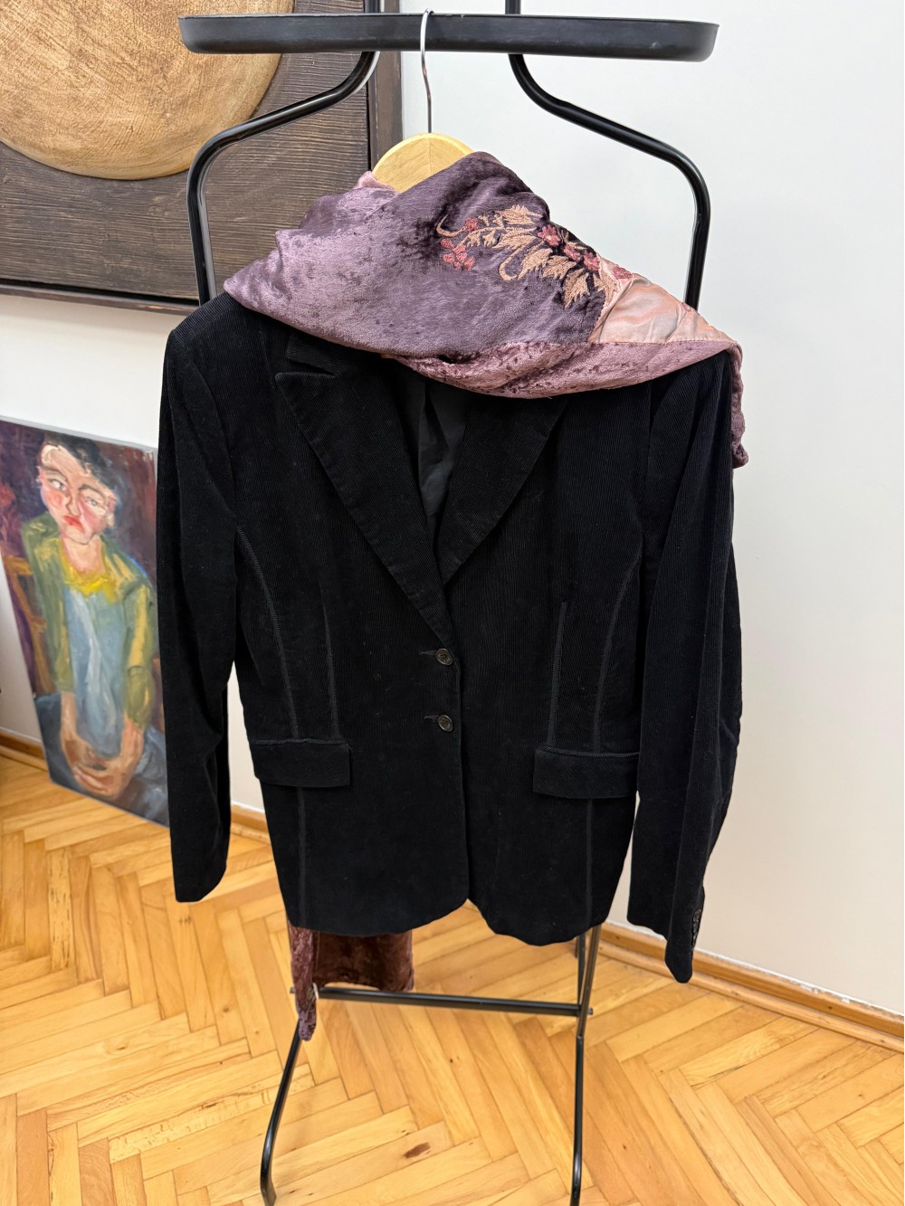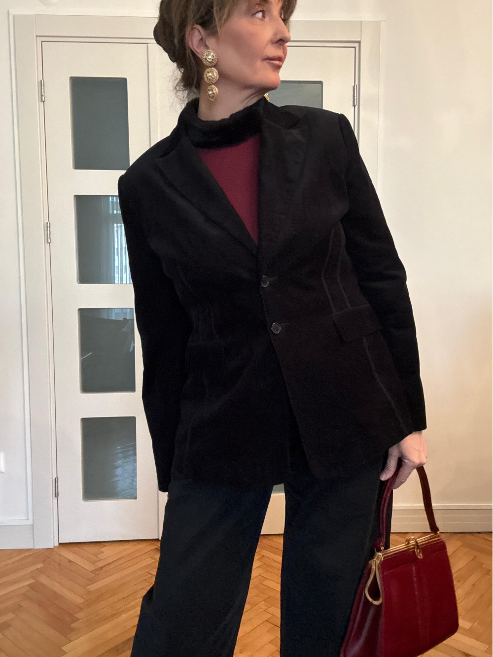 Vintage Siyah İnce Fitiili Kadife Ceket