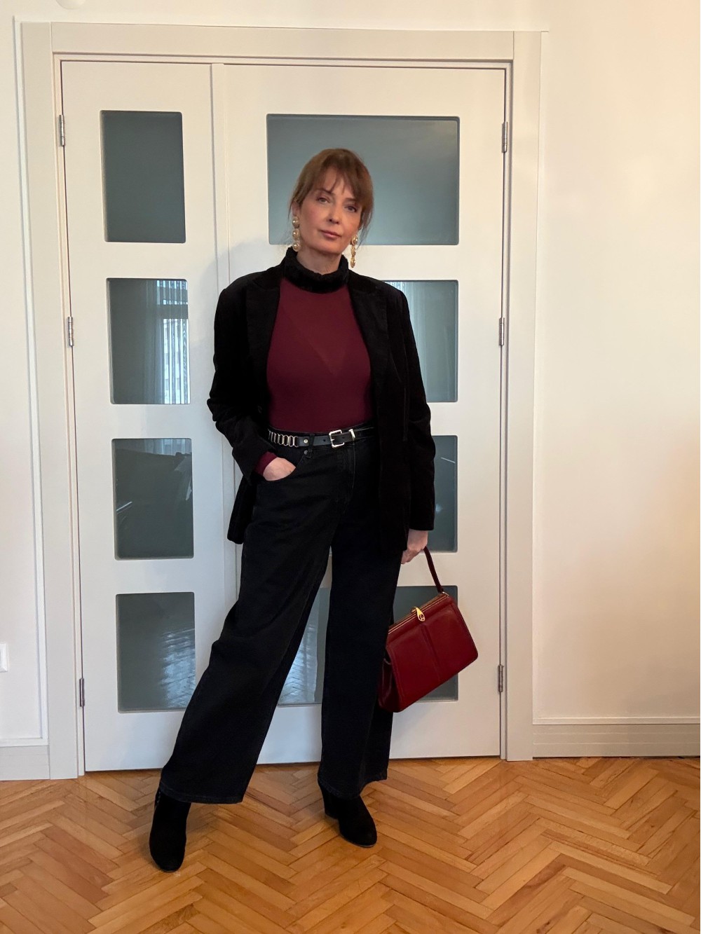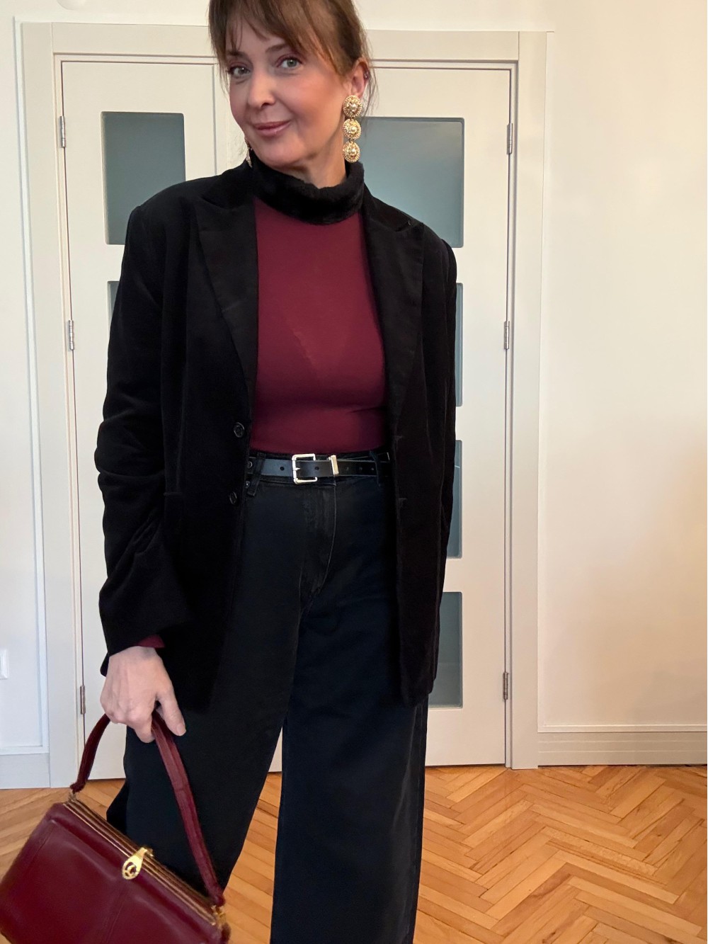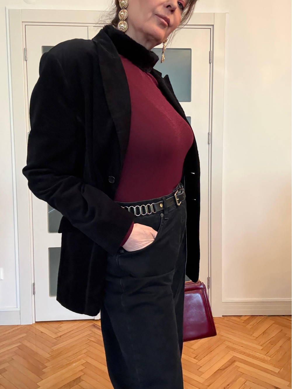 Vintage Siyah İnce Fitiili Kadife Ceket