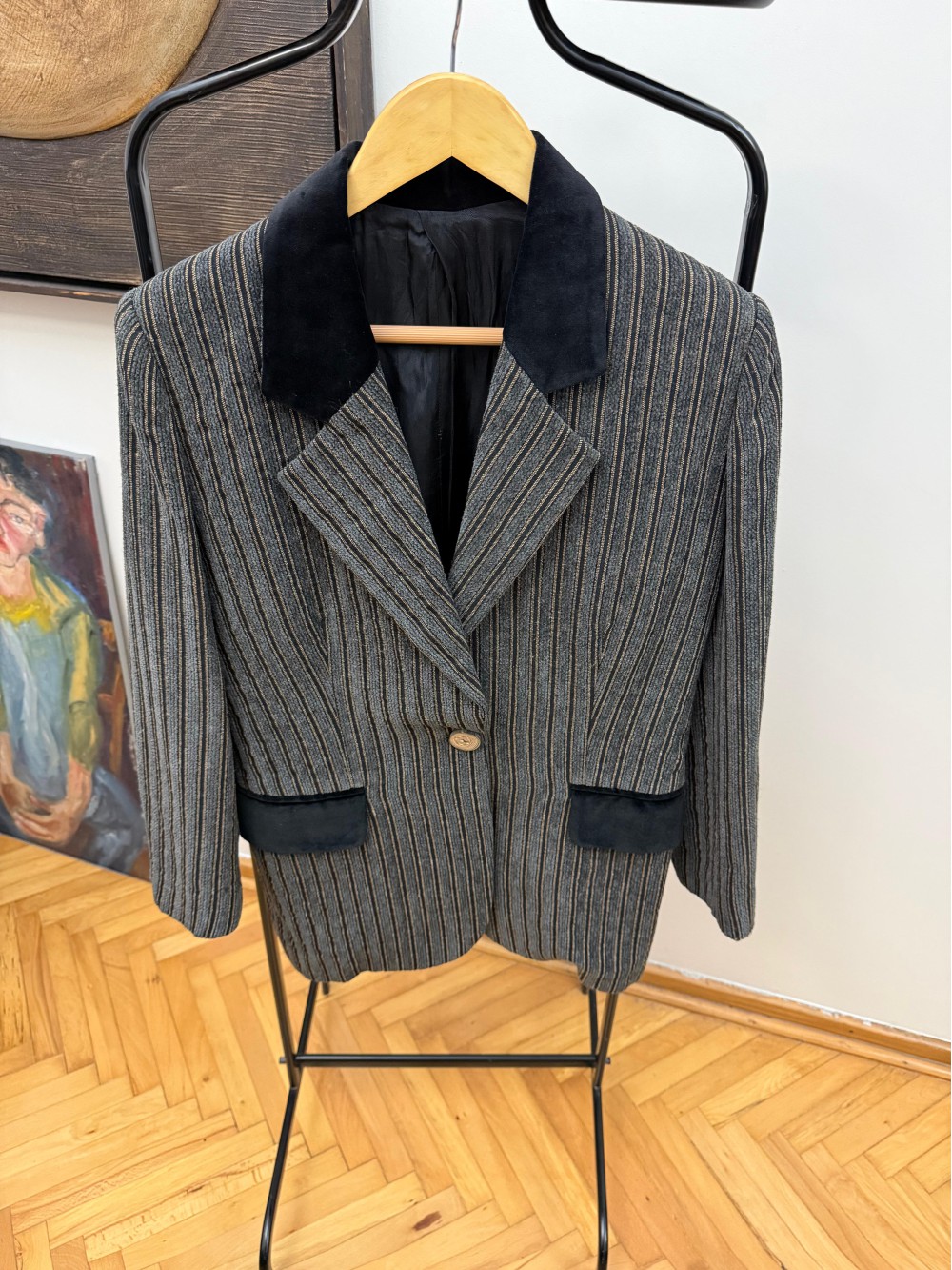 Vintage Siyah Kadife Oversize Ceket