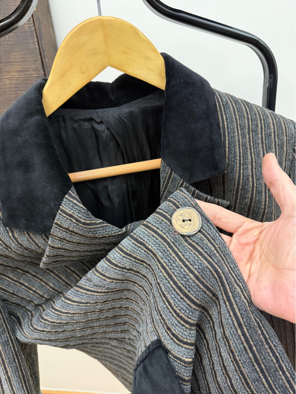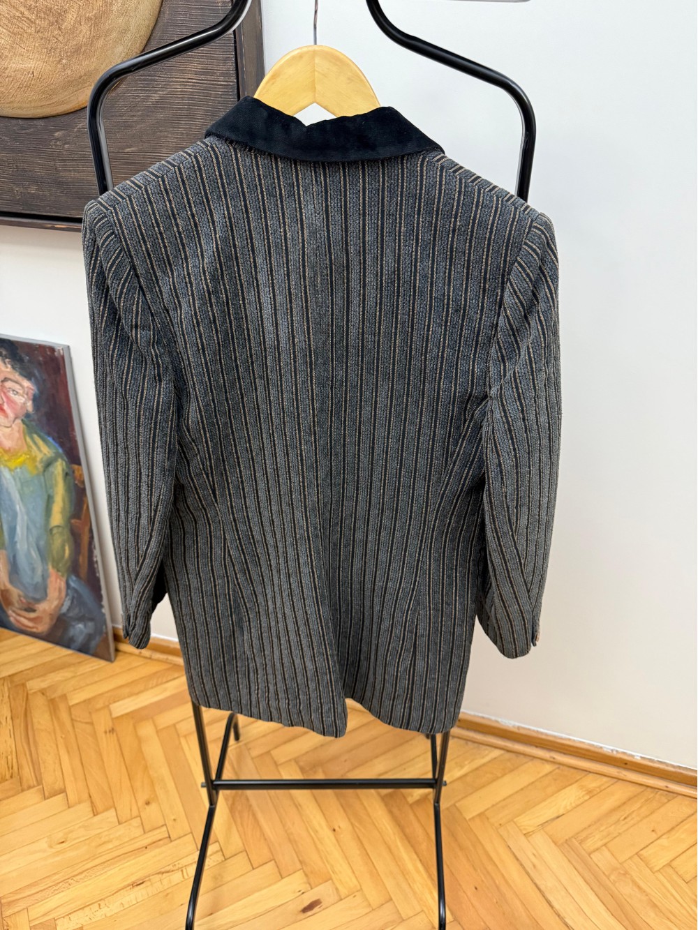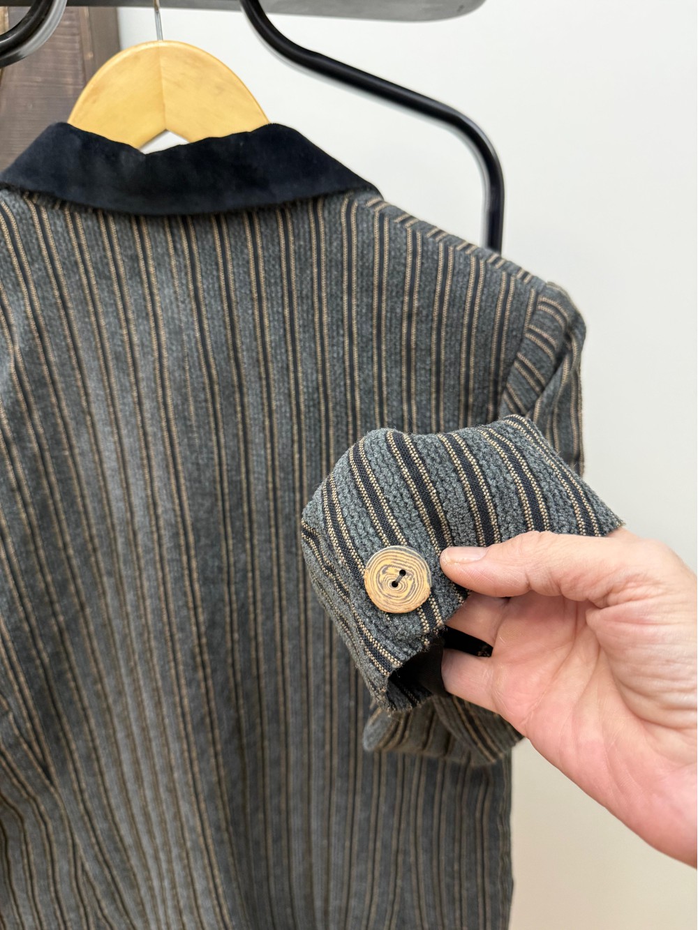Vintage Gri Fitilli Kadife Ceket