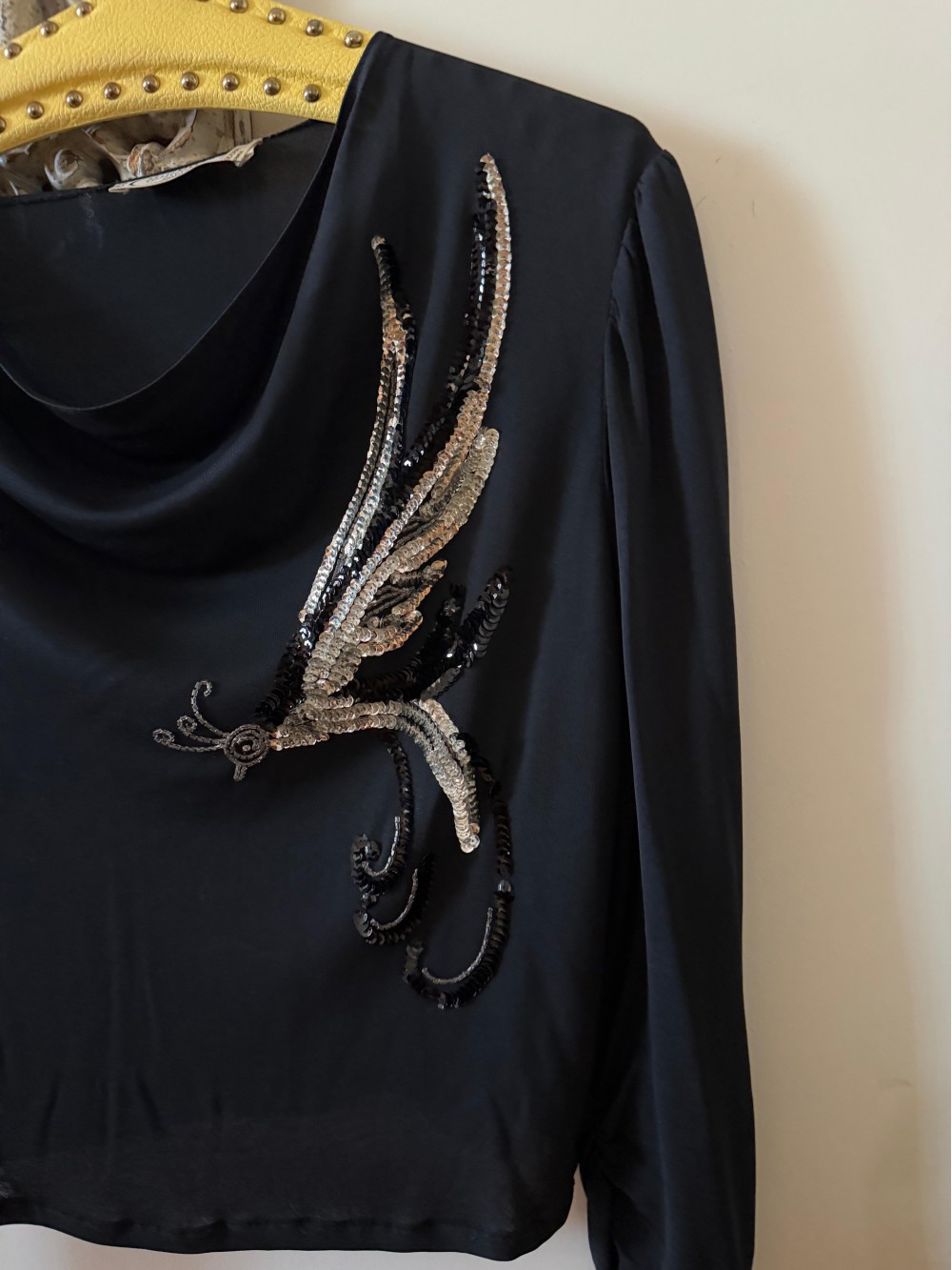 Vintage 80s -Bille Paris -Pul İşlemeli Bluz