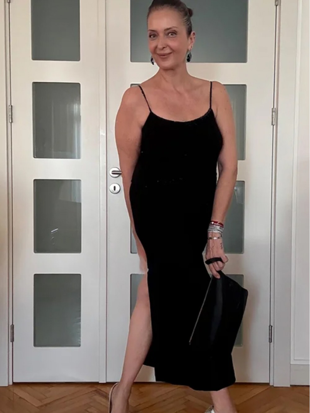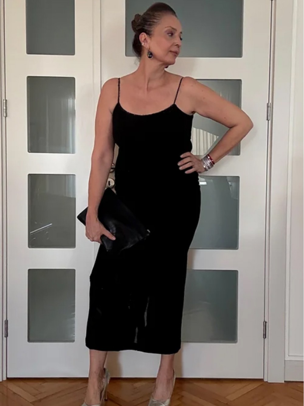 Etek uçları delik işi askıları ve ön kısımları pullu jarse esnek kumaş
