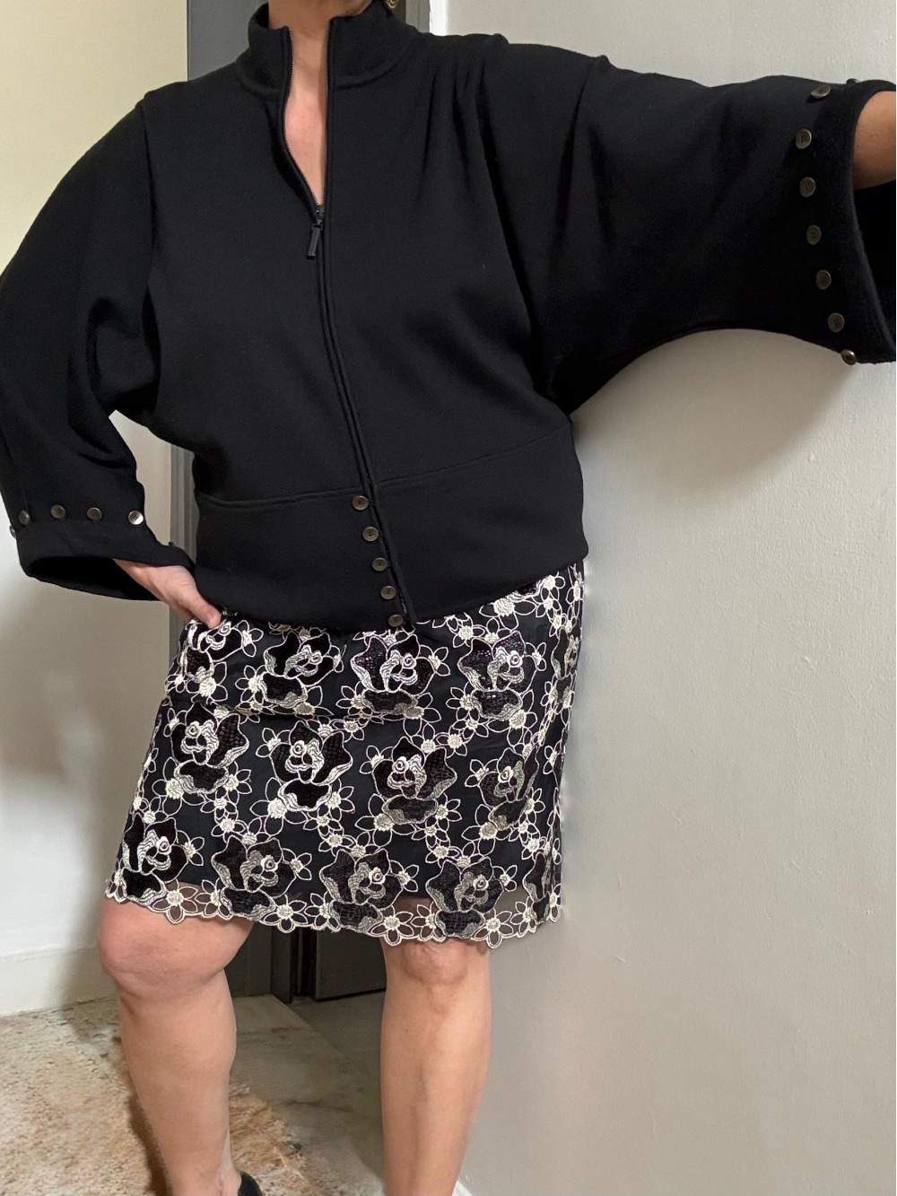 Vintage Siyah Güpür Dantel Kalem Etek