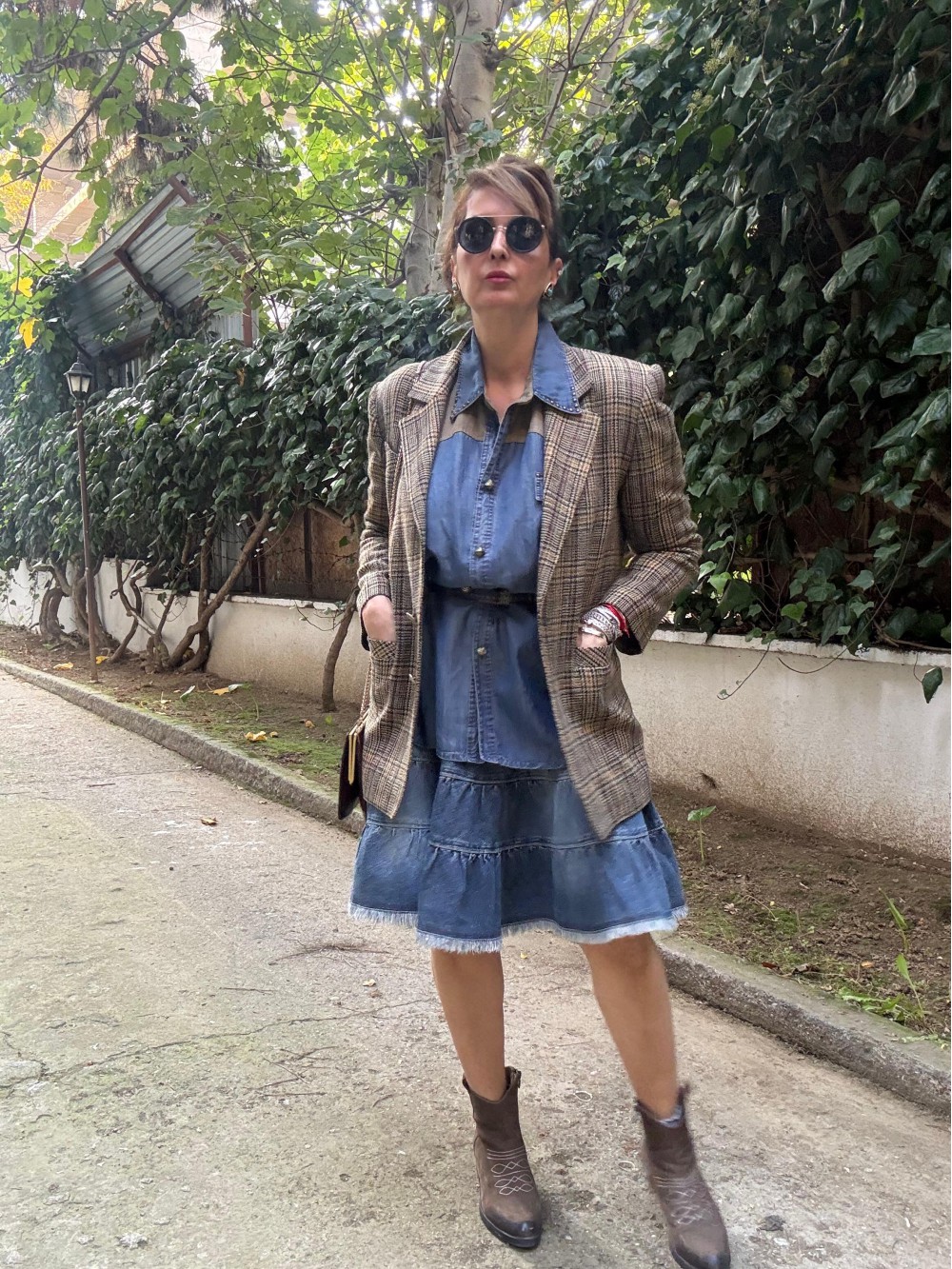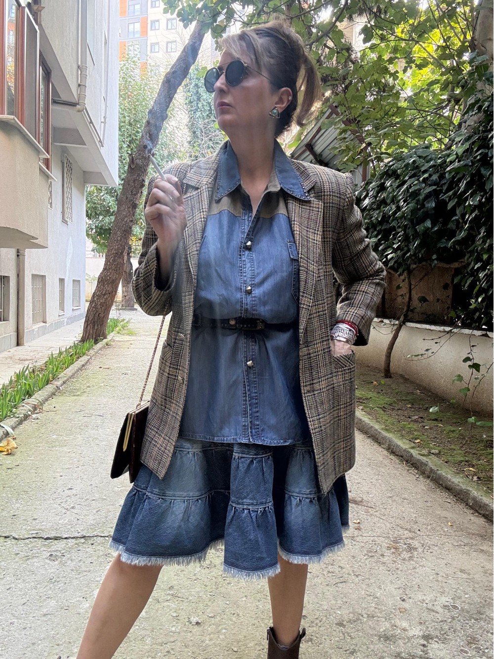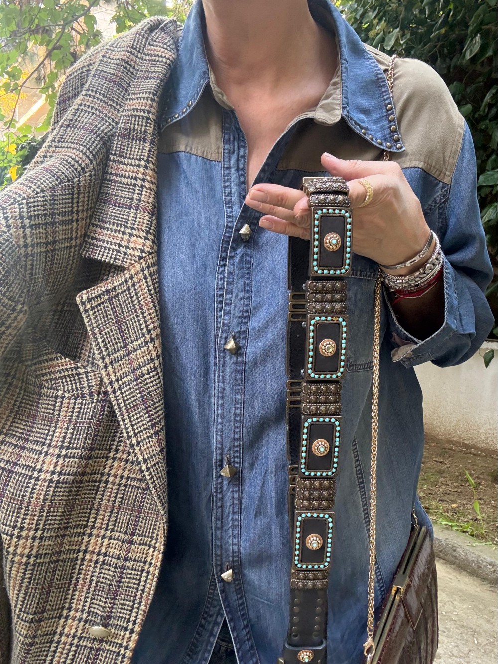 Vintage Bordo-Yeşil Kazayağı Blazer