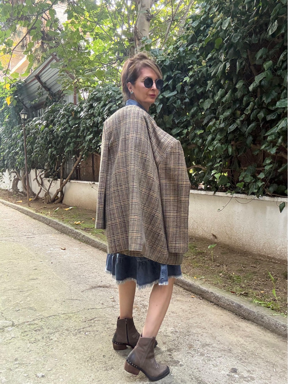 Vintage Çift düğmeli Ekose Ceket