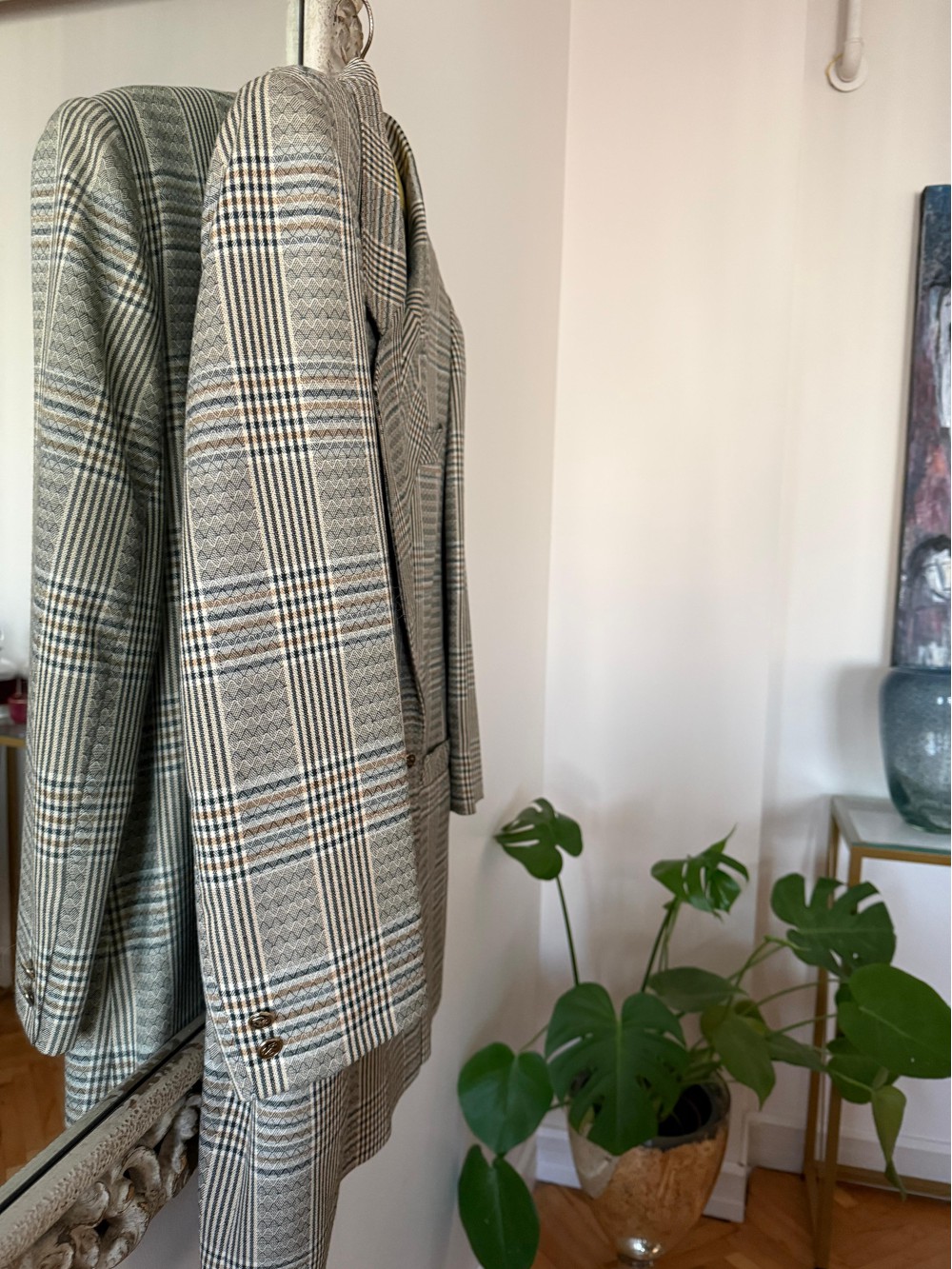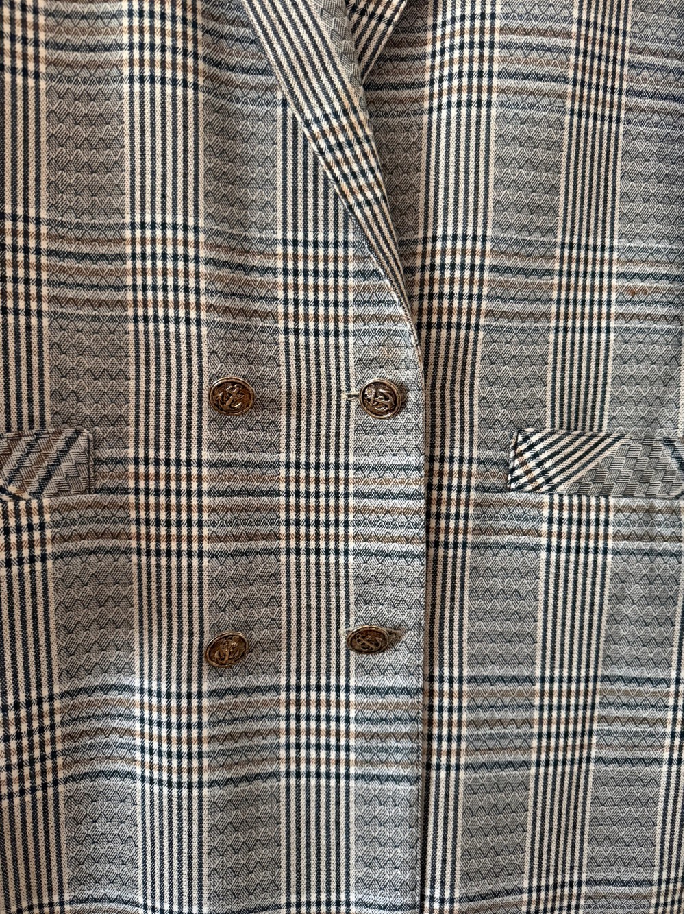 Vintage Kruvaze Gold Düğmeli Ekose Blazer