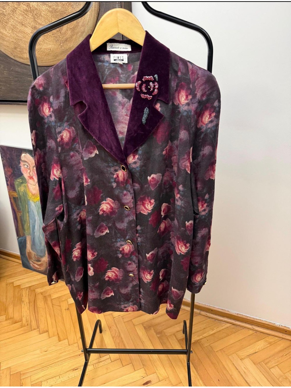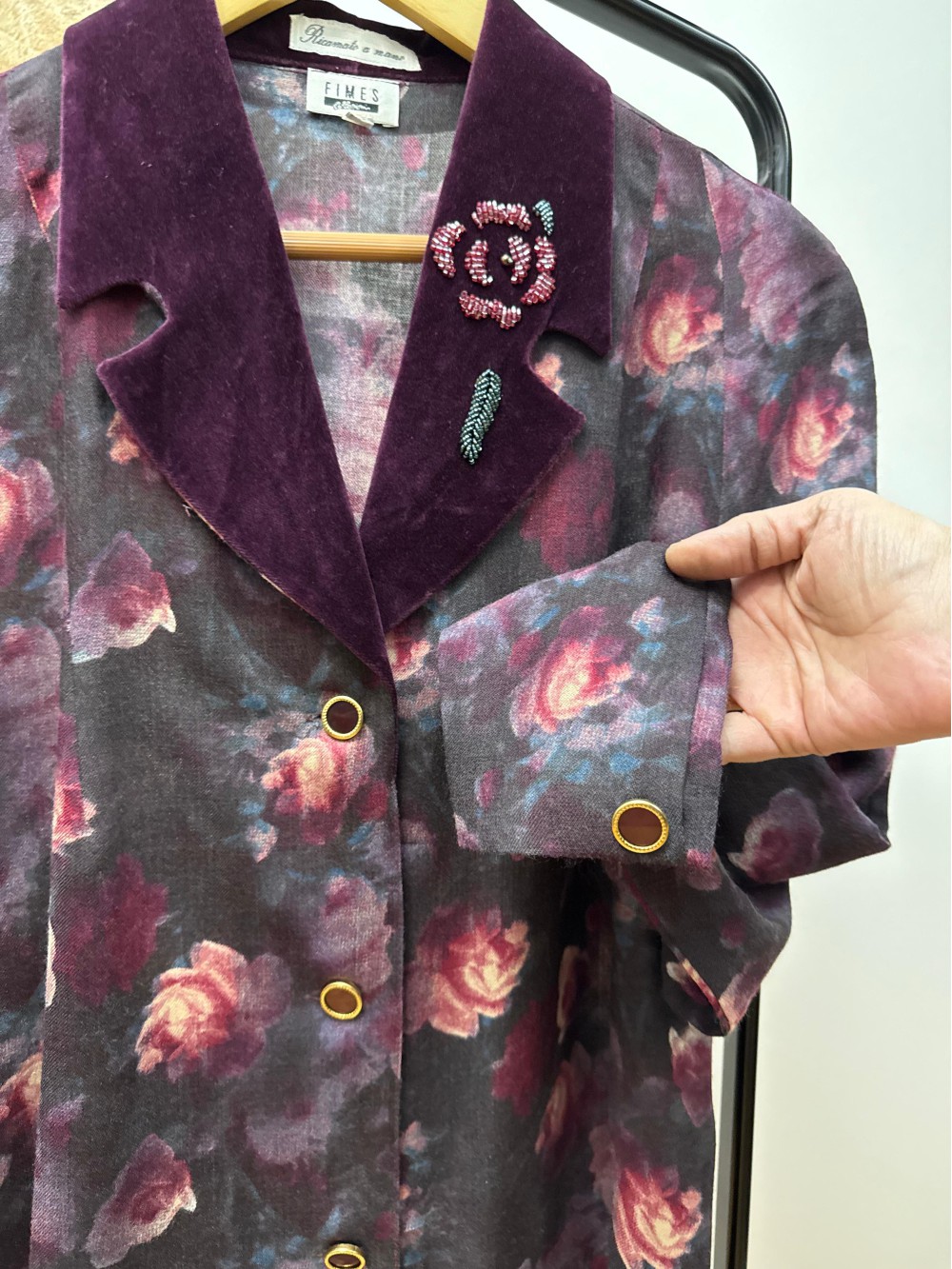 Vintage İtalyan Kadife Yakalı Yün Gömlek