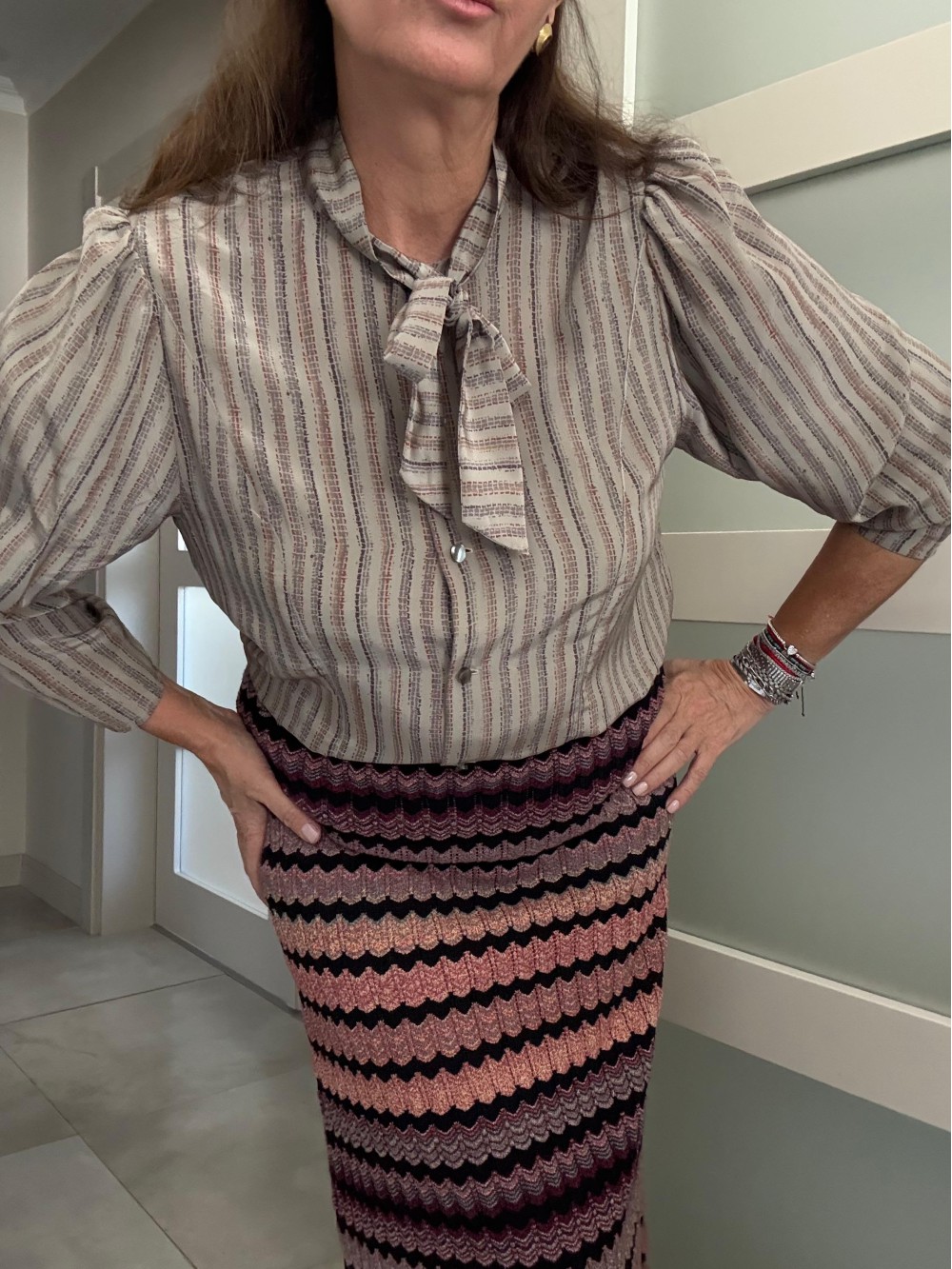 Vintage İpek Boyundan Bağlamalı Gömlek