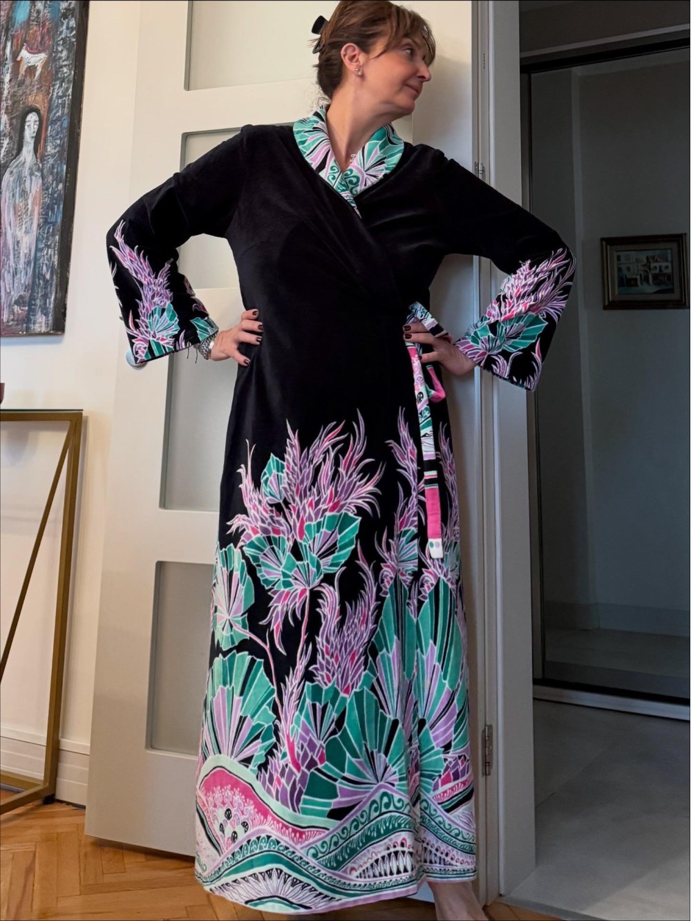 Vintage Kadife Çok Renkli Sabahlık