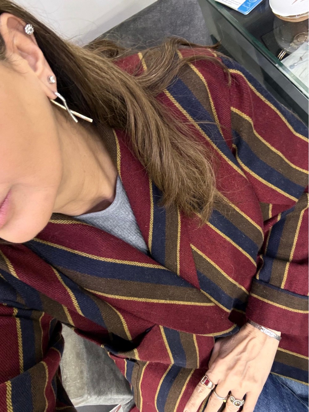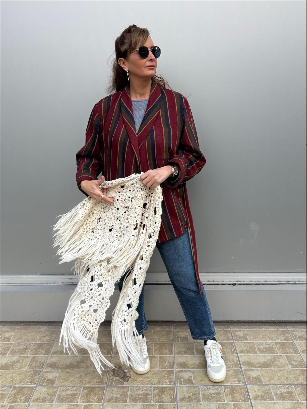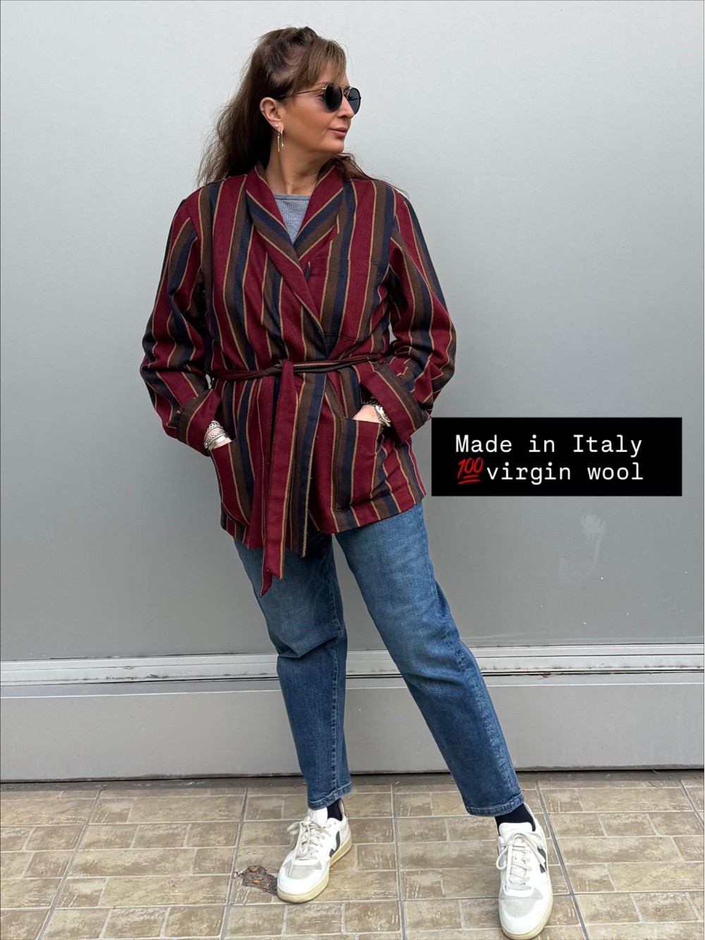 Vintage Made in Italy Yün Bordo Çizgili Ceket/Kimono