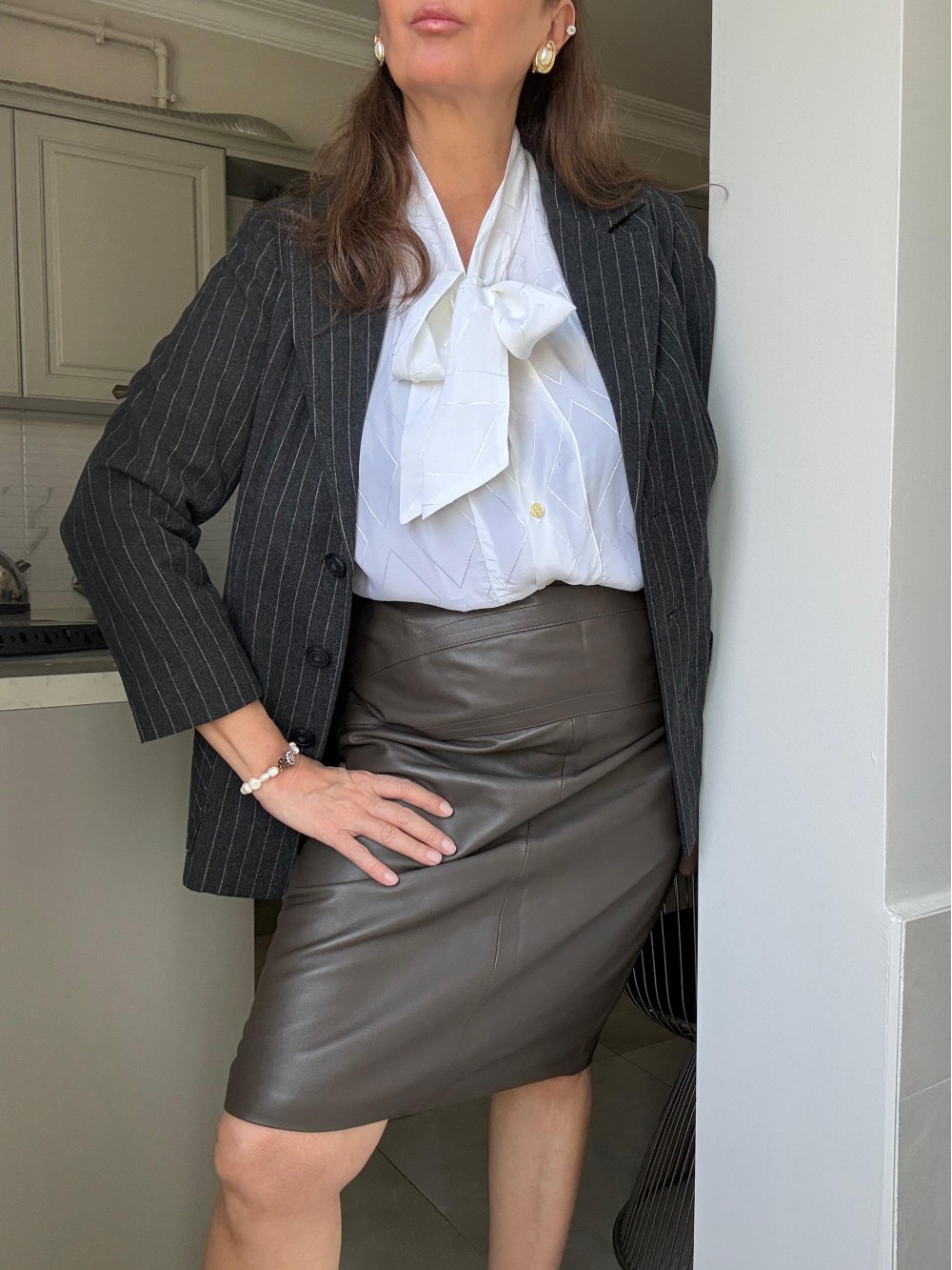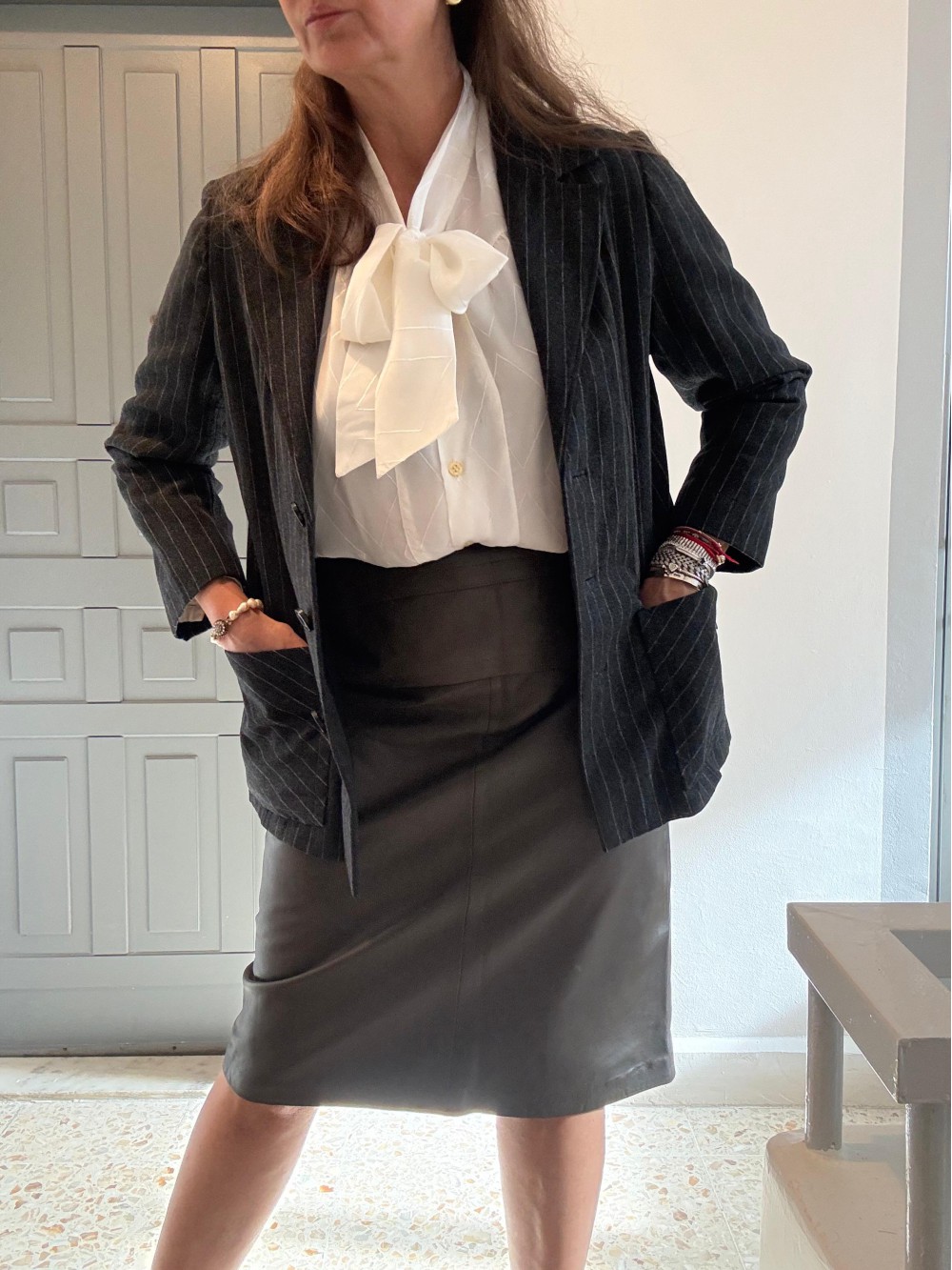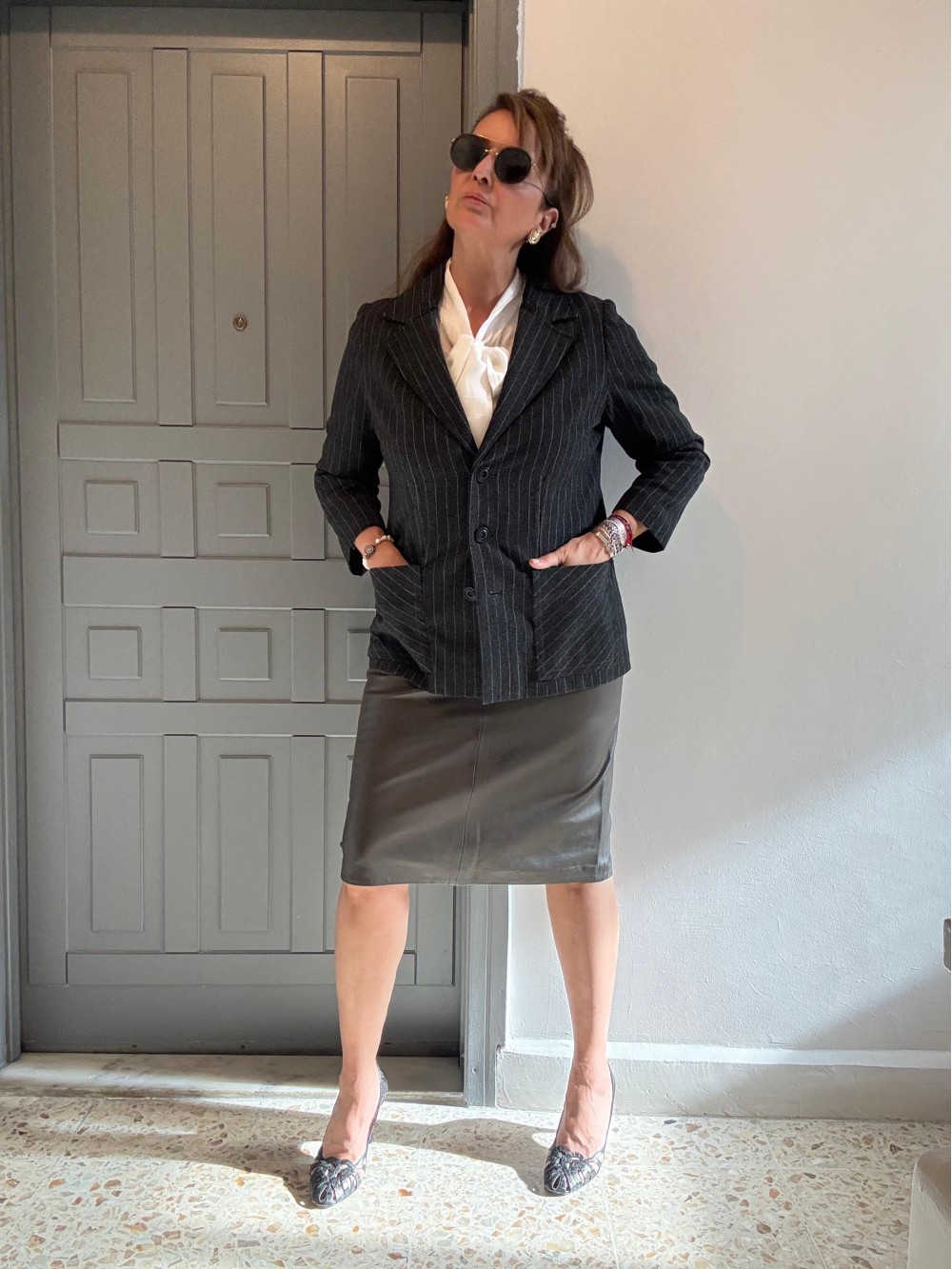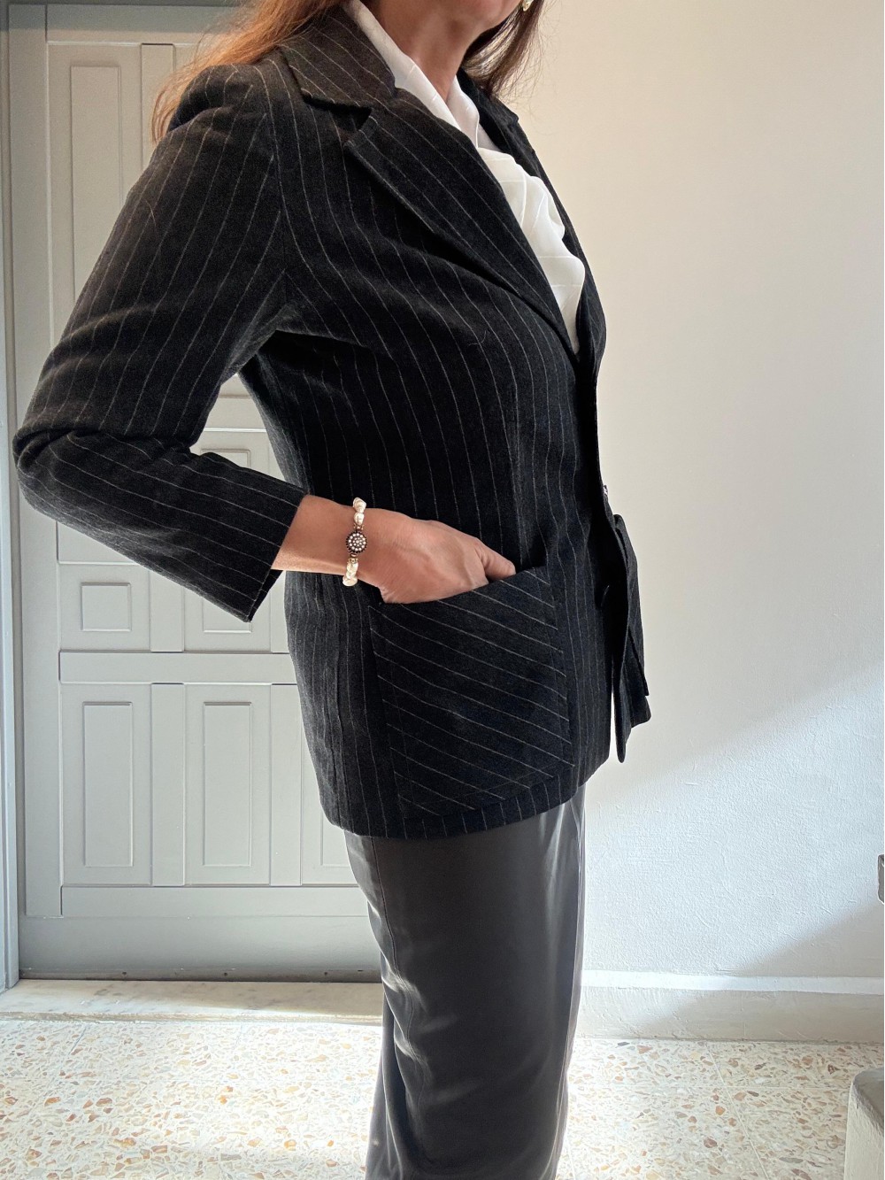Vintage Yün Antrasit Çizgili Ceket