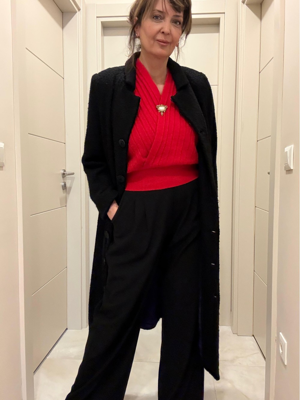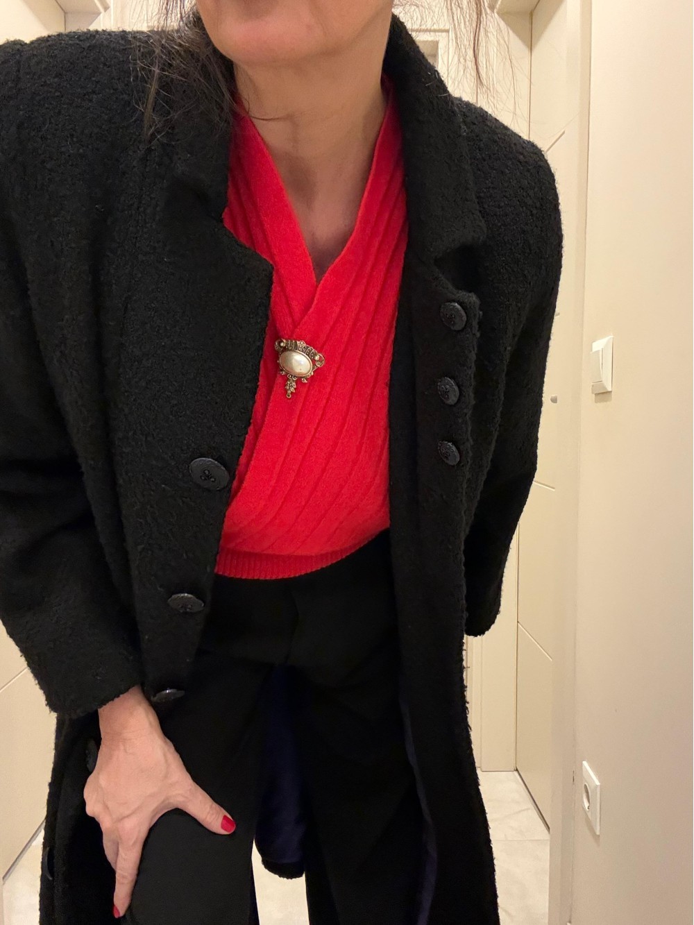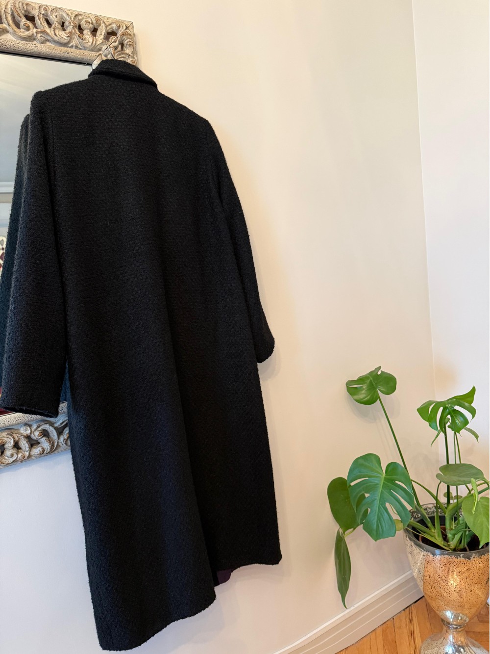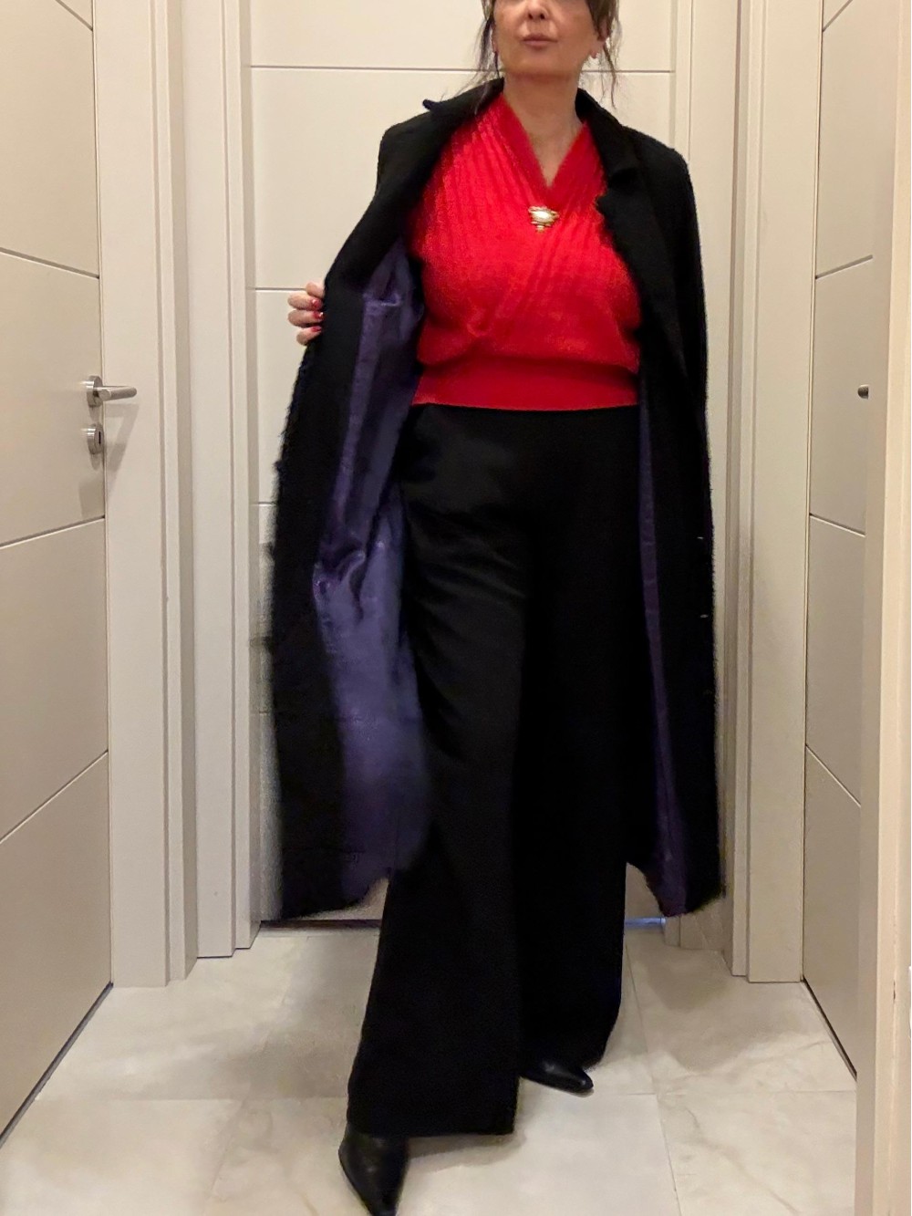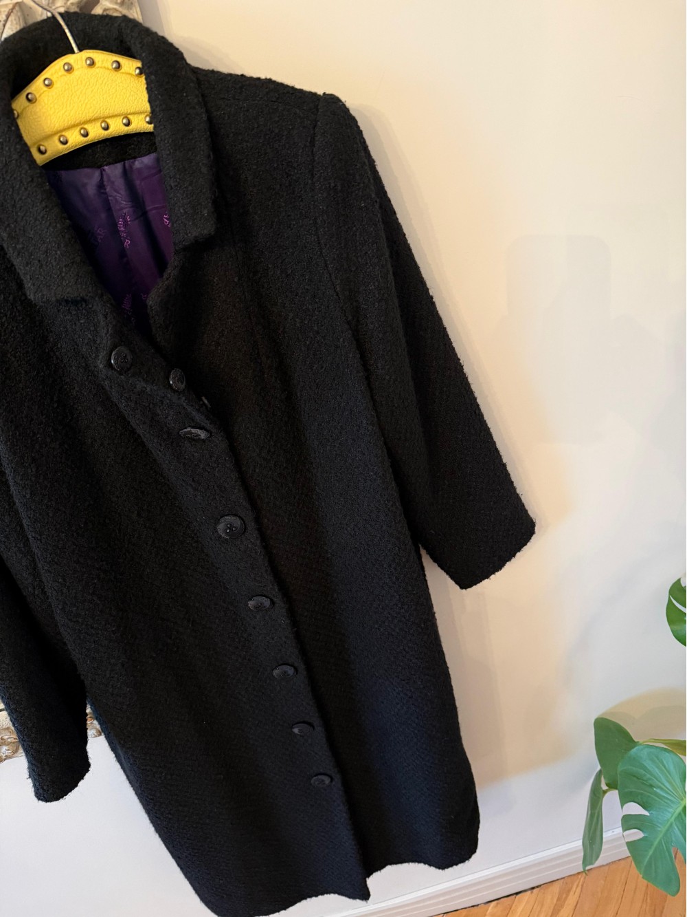 Vintage Siyah Mor Astarlı Manto