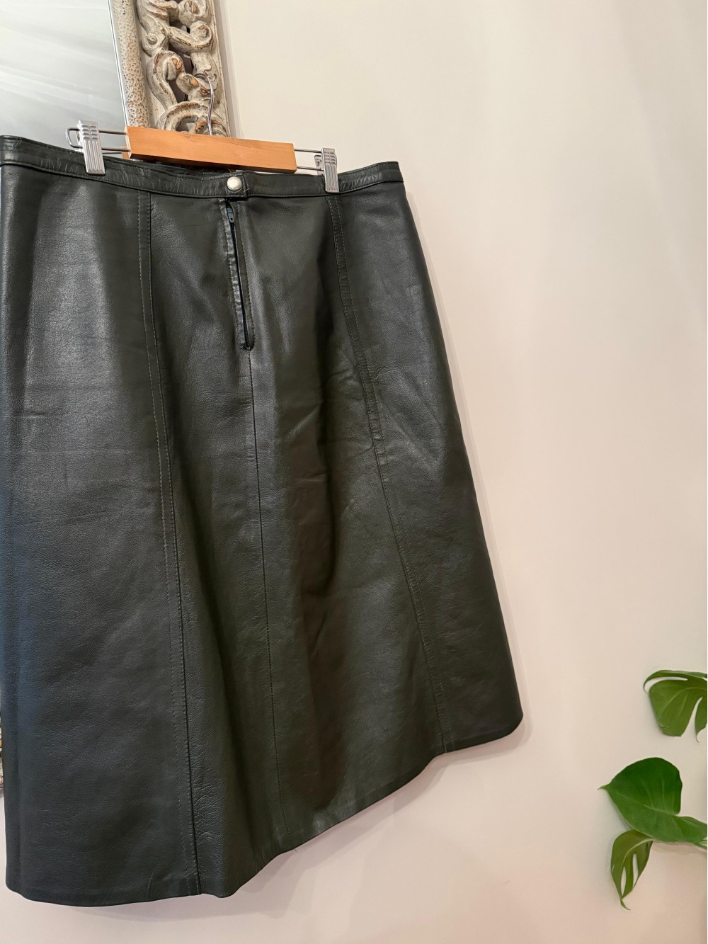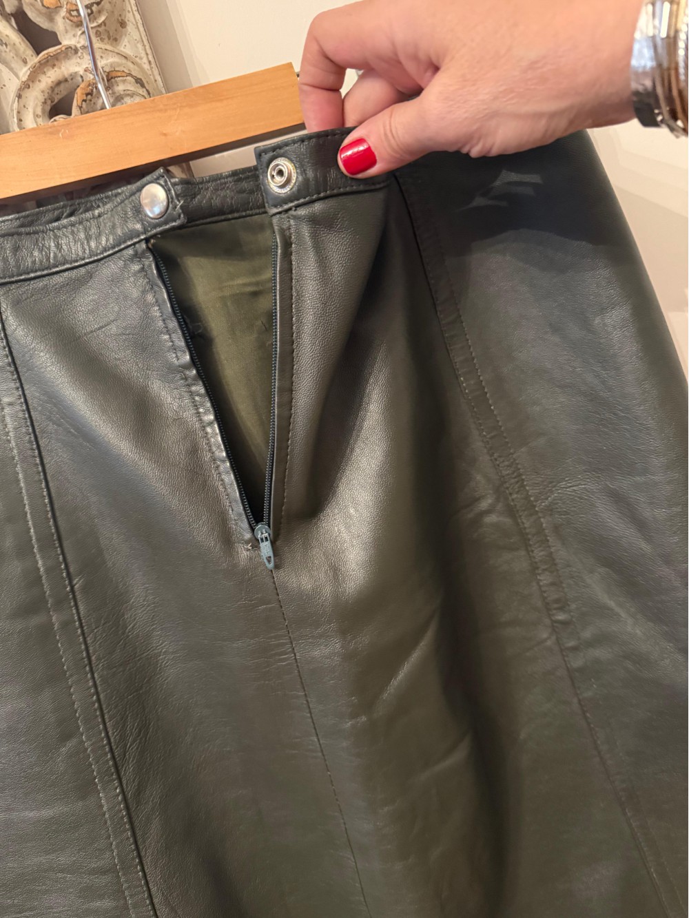 Vintage Haki Deri Çan Etek