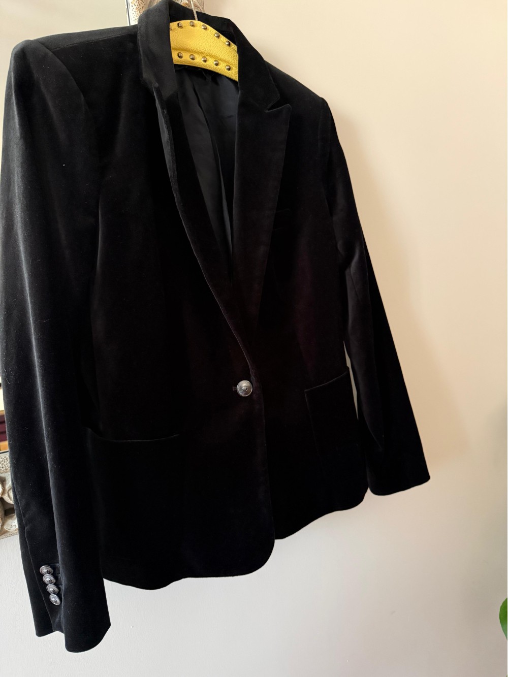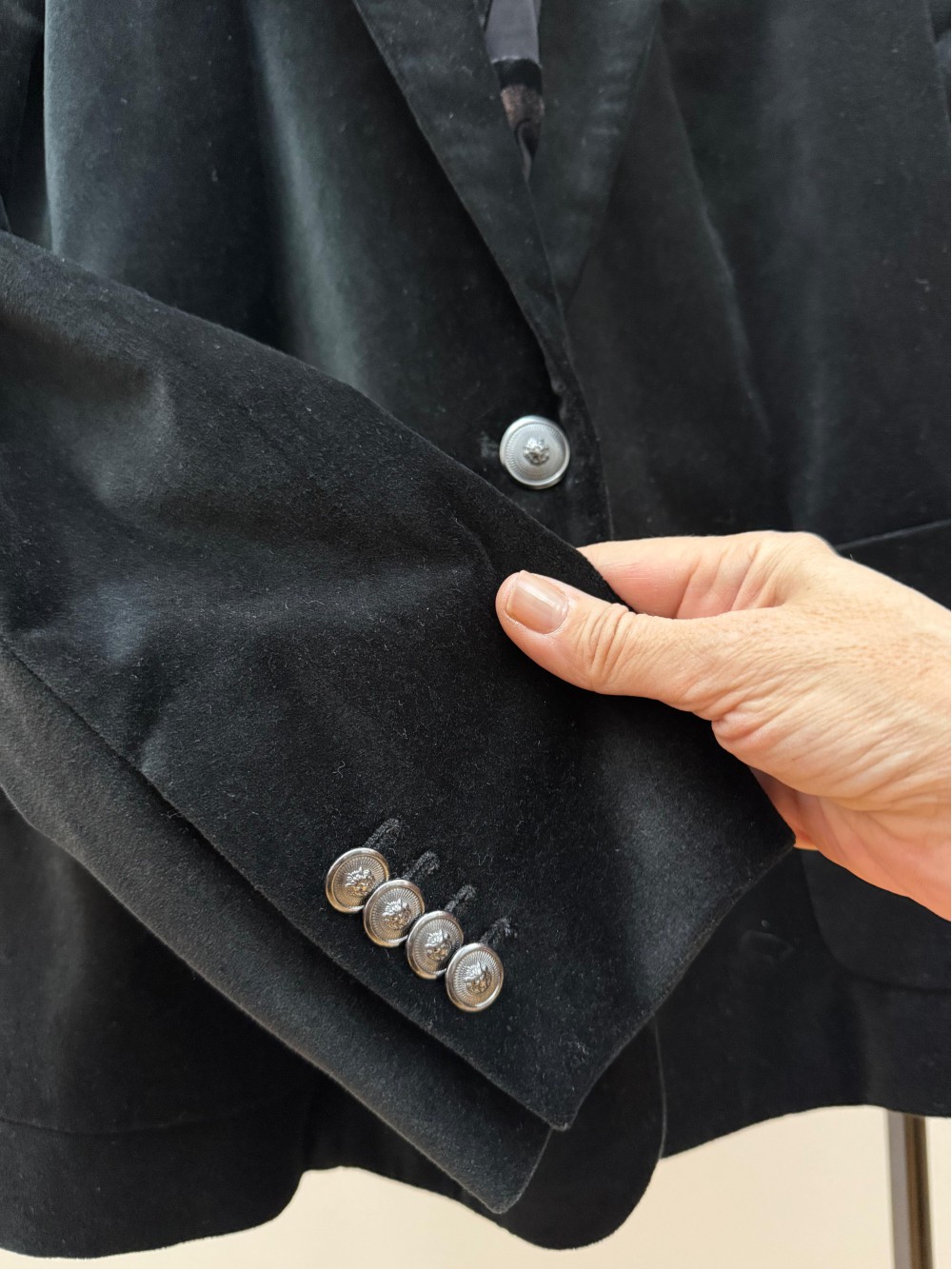 Vintage Siyah Kadife Tek Düğmeli Blazer