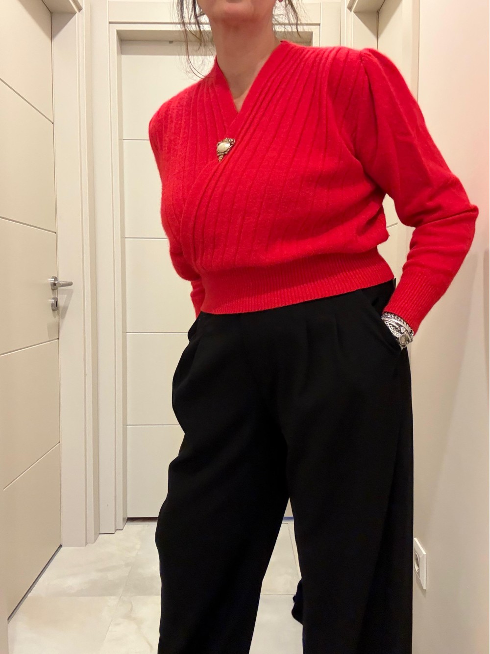 Vintage 80s Kırmızı Angora Kazak