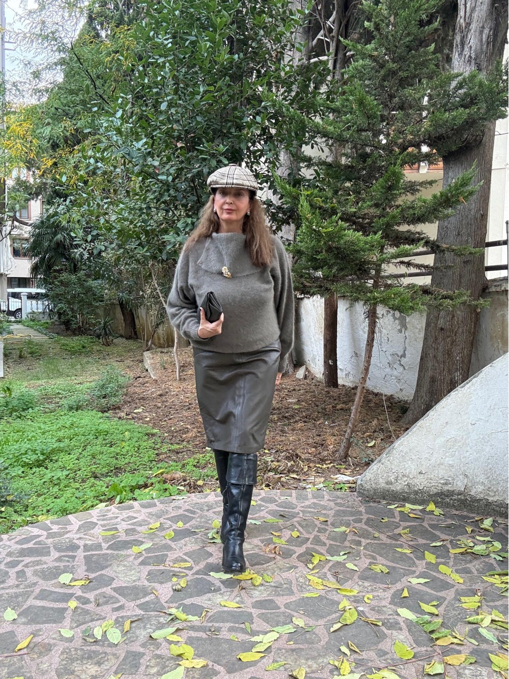 Vintage Büyük Beden Siyah Deri Çan Etek