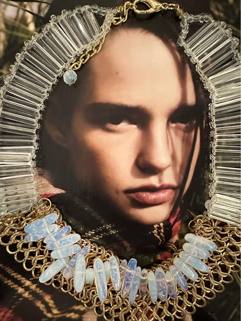 Tasarım cam görünümlü şeffaf  boncuklu kolye