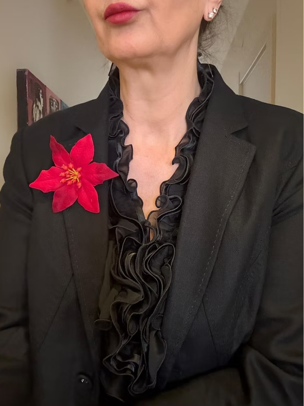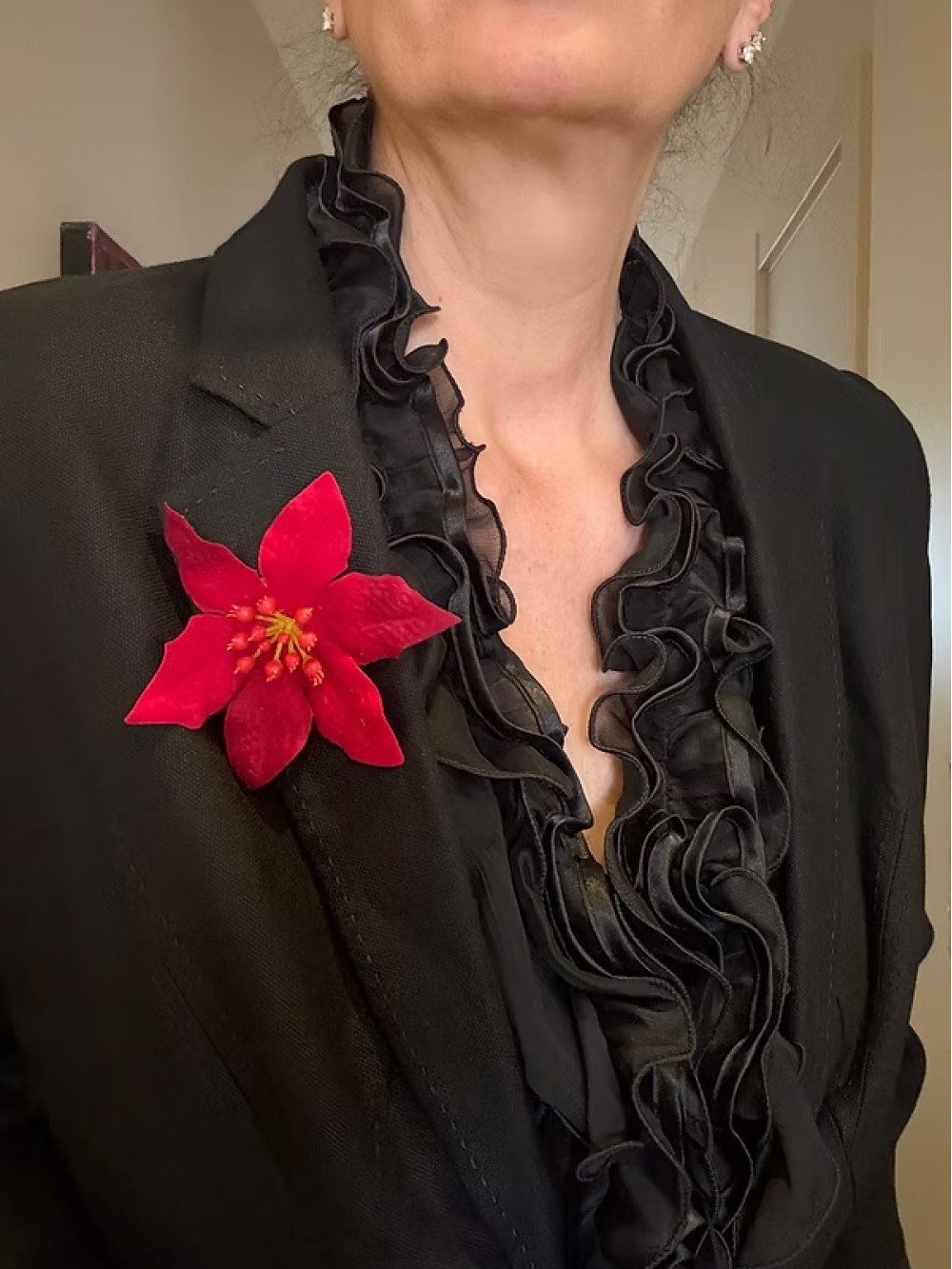 Vintage 80s Çiçek Figürlü Kumaş Broş