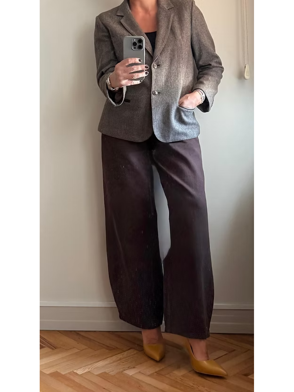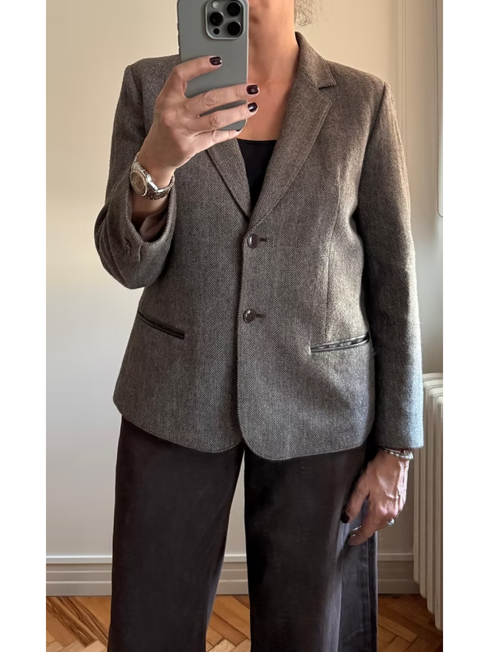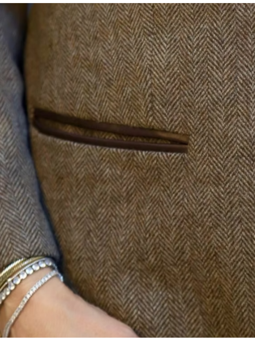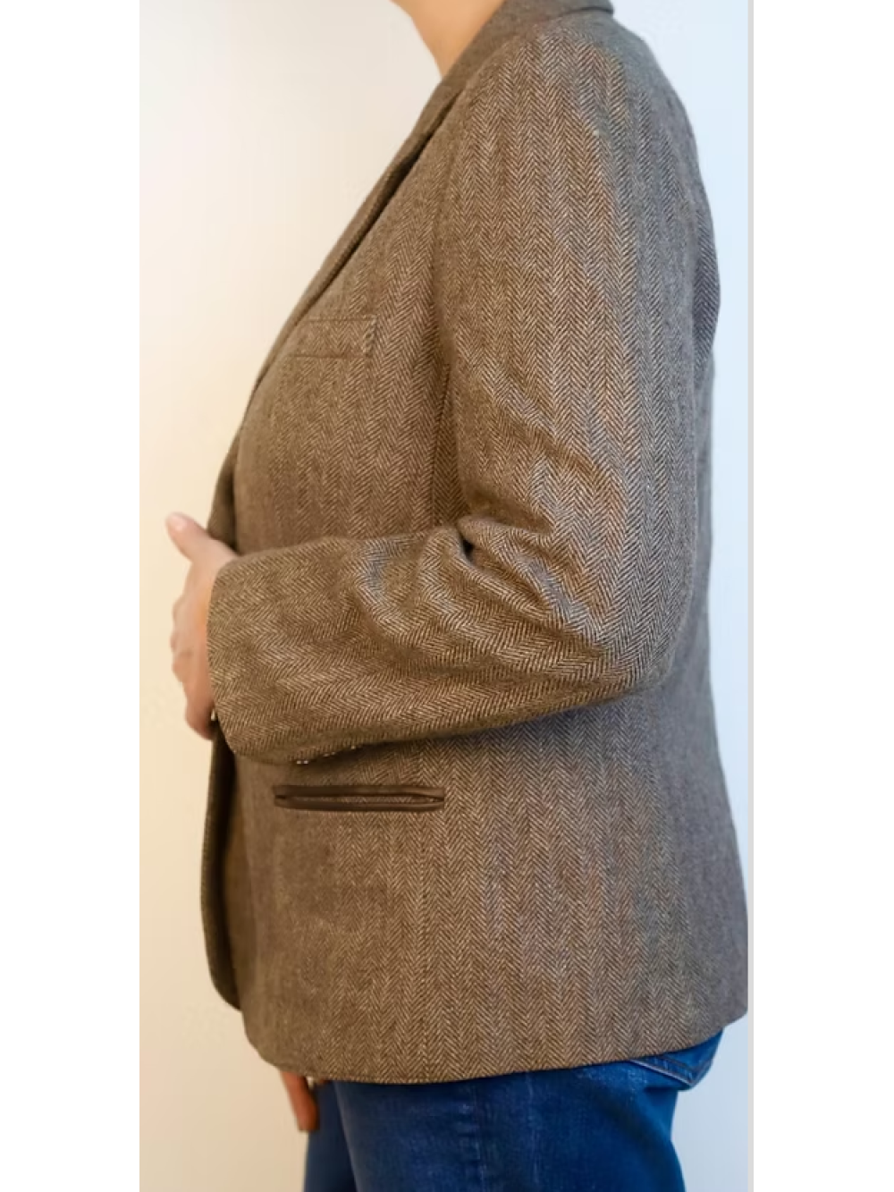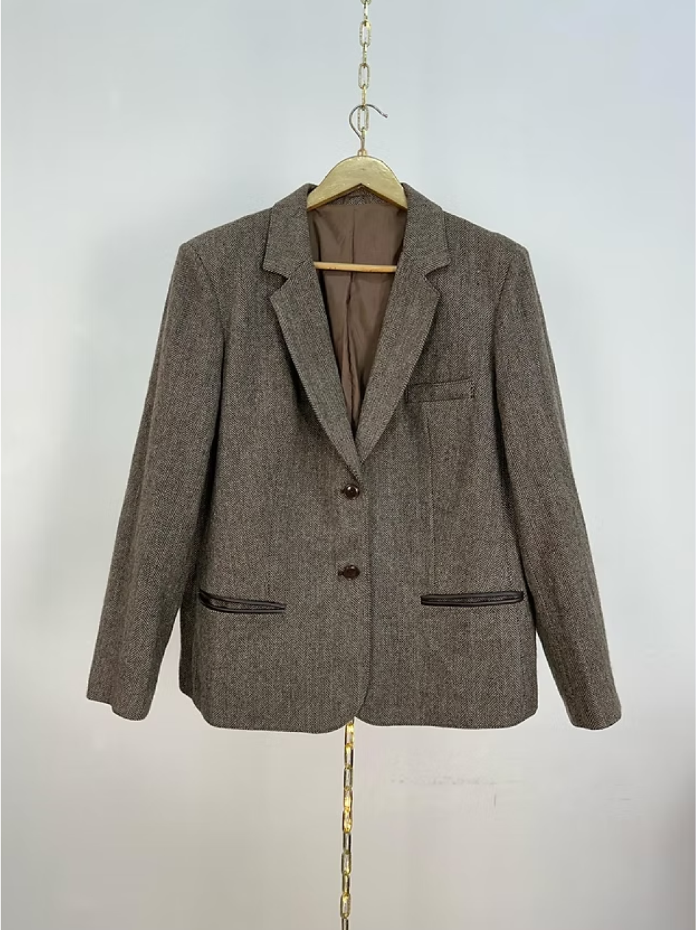 Vintage Deri Detaylı Balıksırtı Ceket