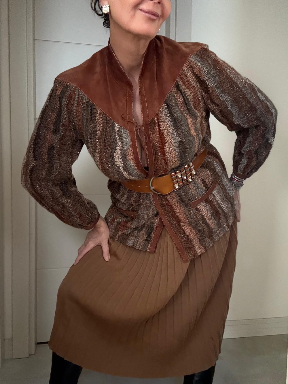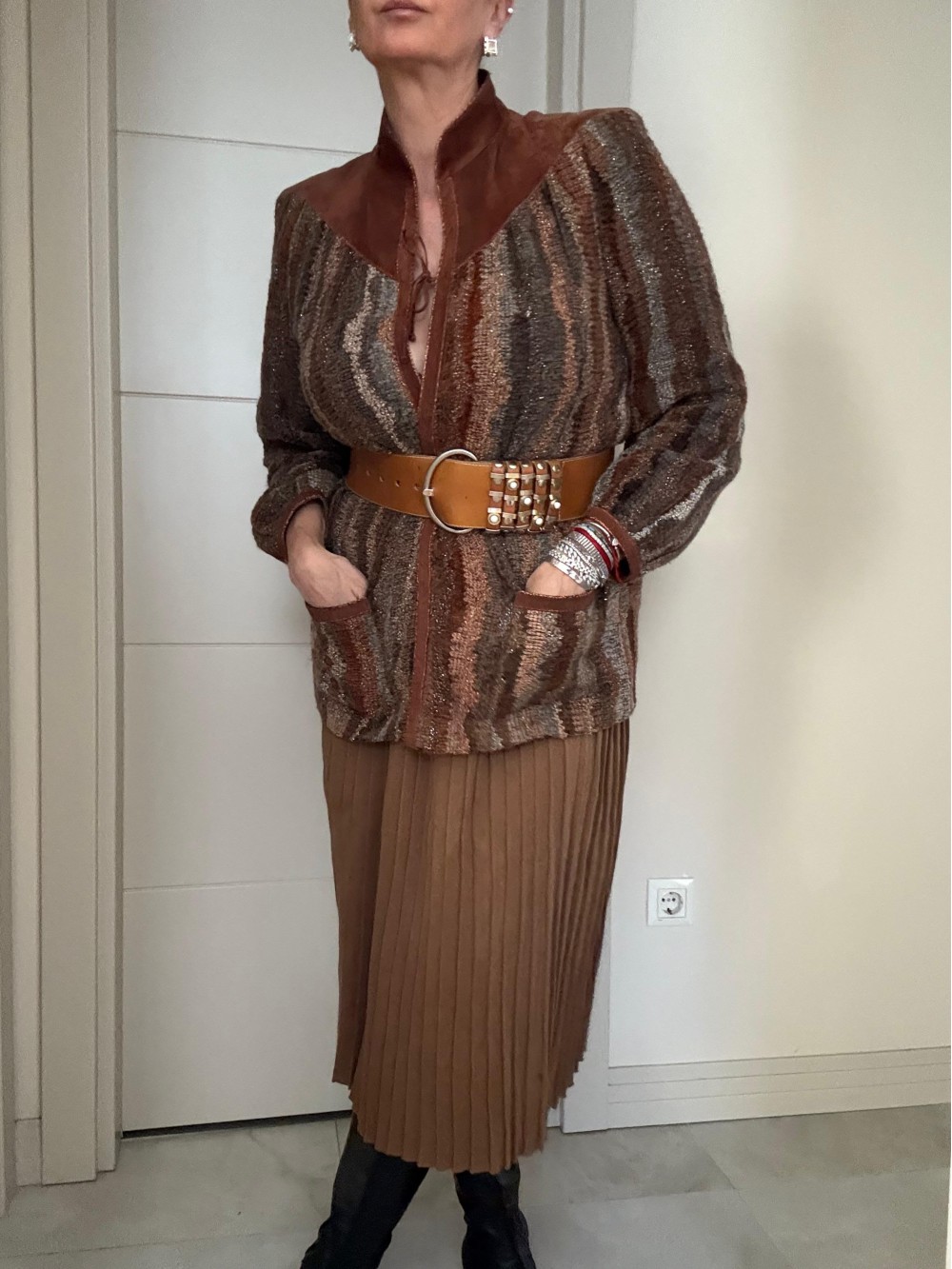 Vintage Made in France Süet & Triko Hırka