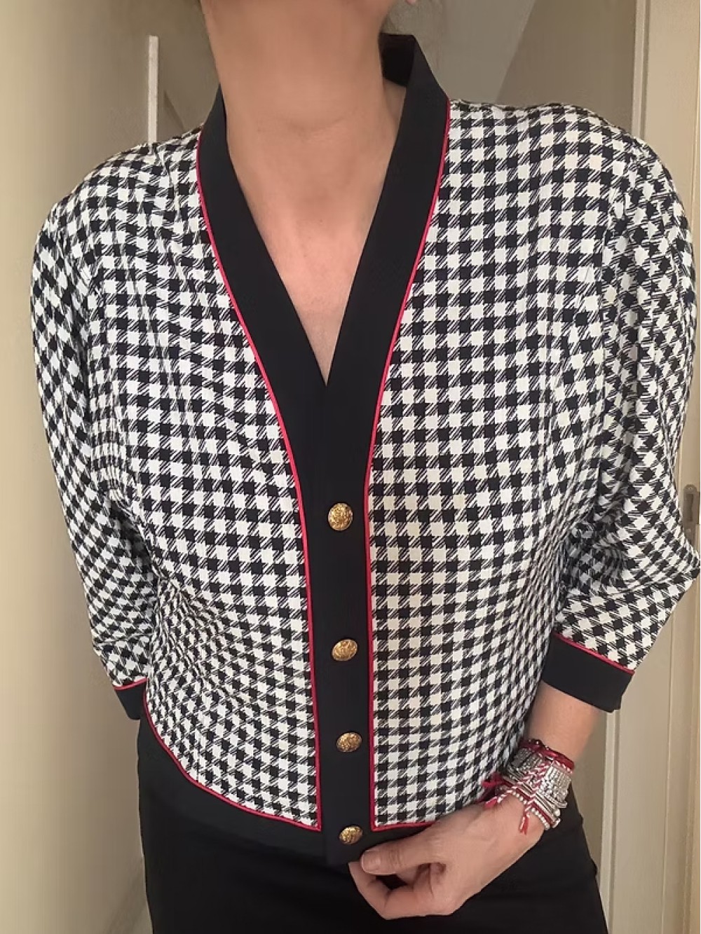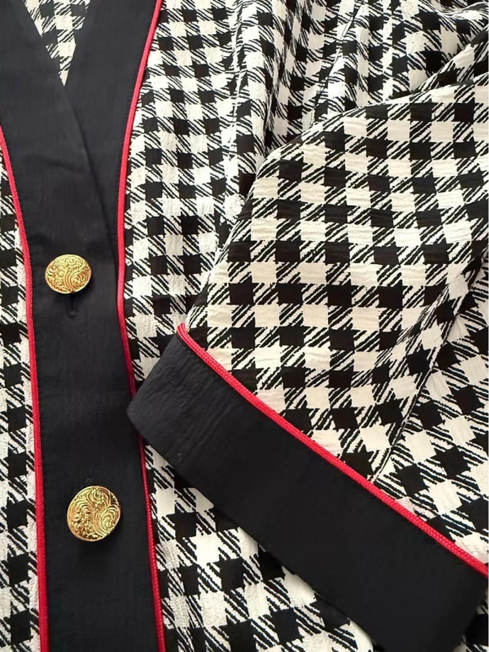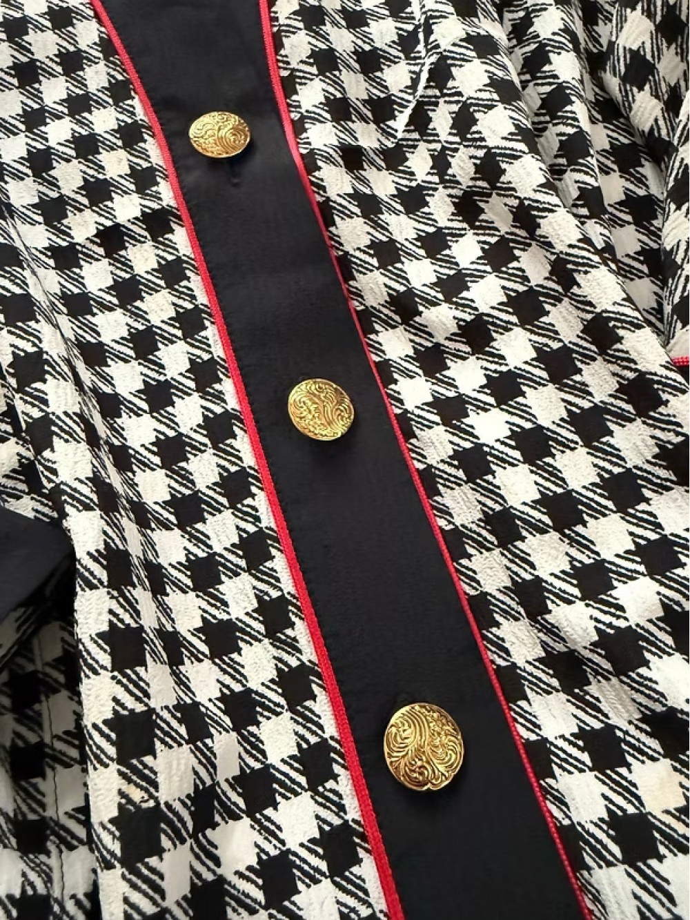 Vintage Gold Düğmeli Kazayağı Desen Bluz