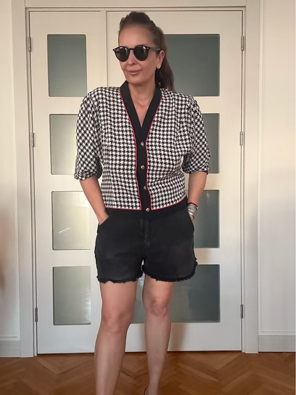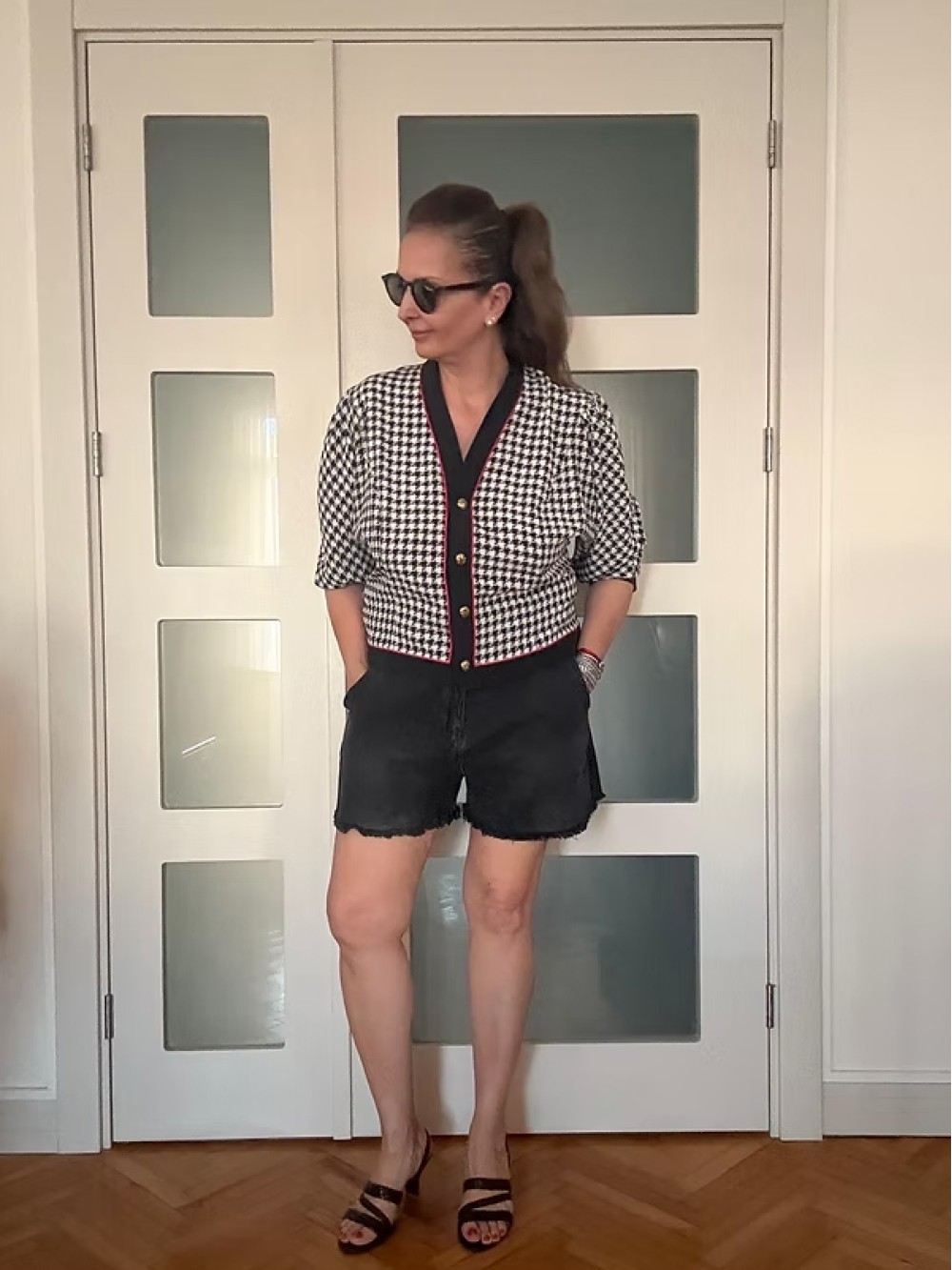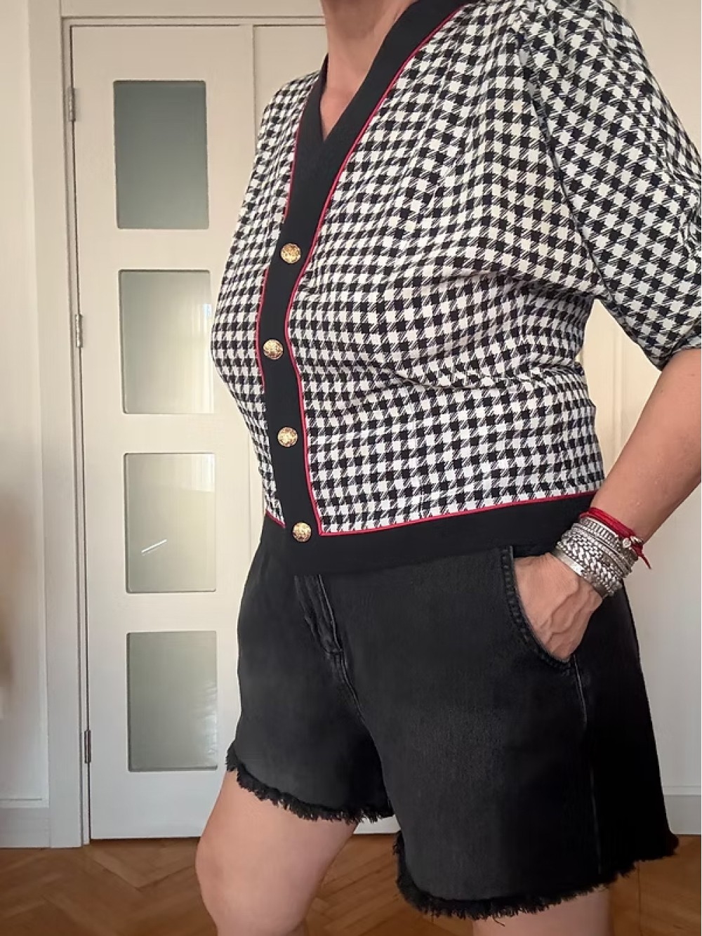 Vintage Gold Düğmeli Kazayağı Desen Bluz