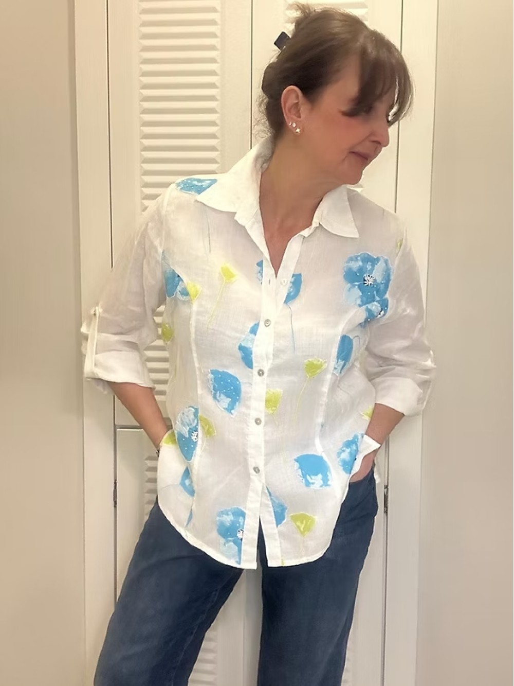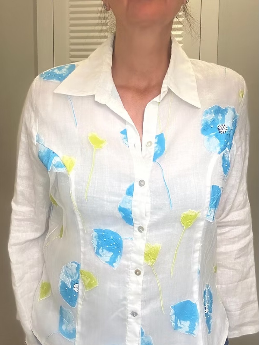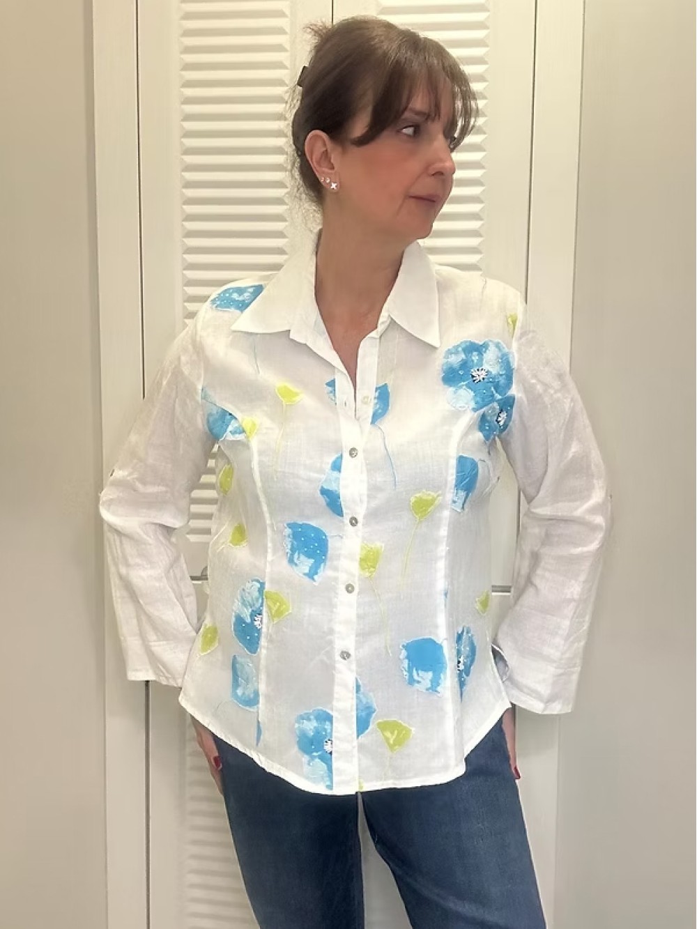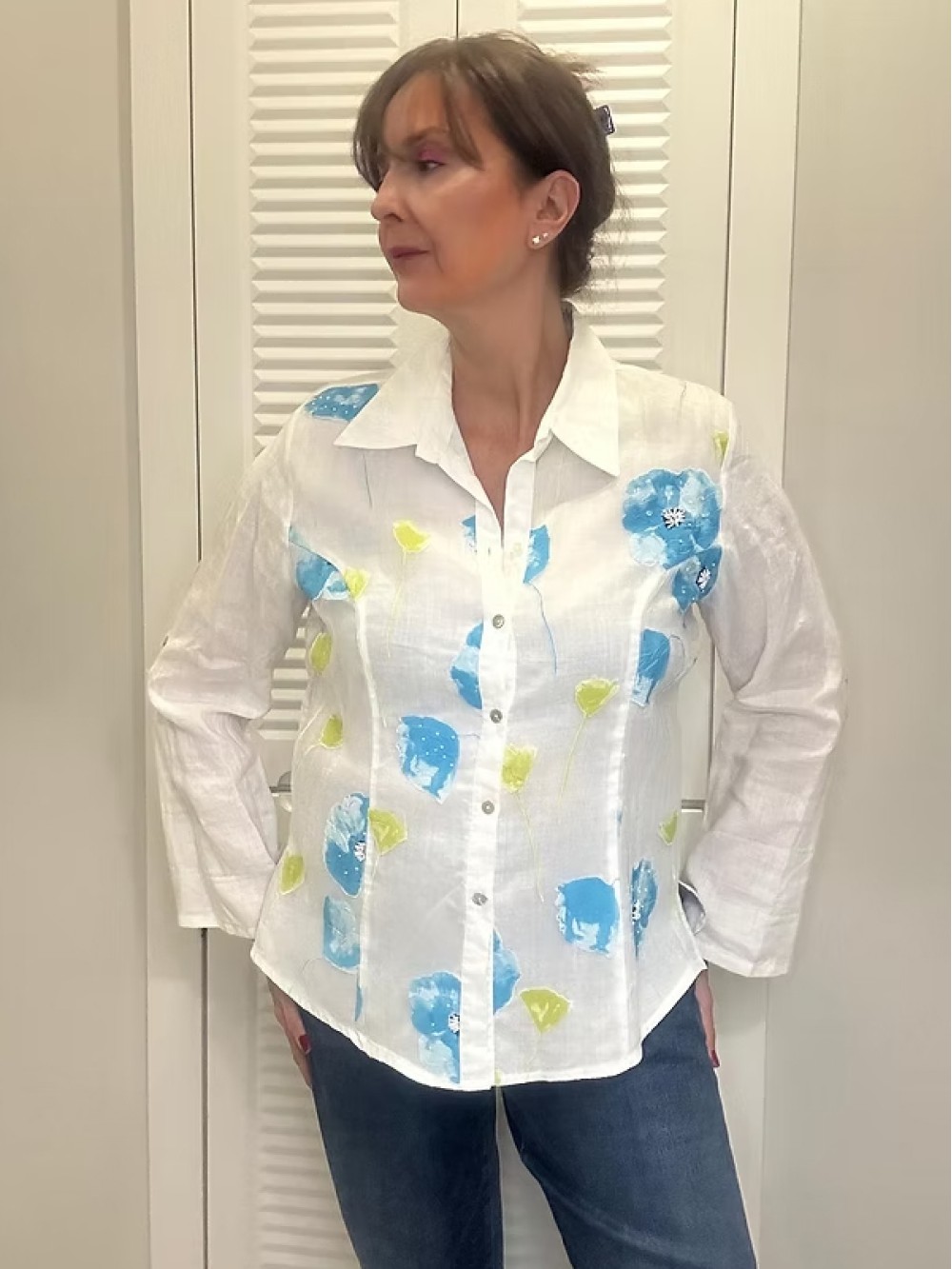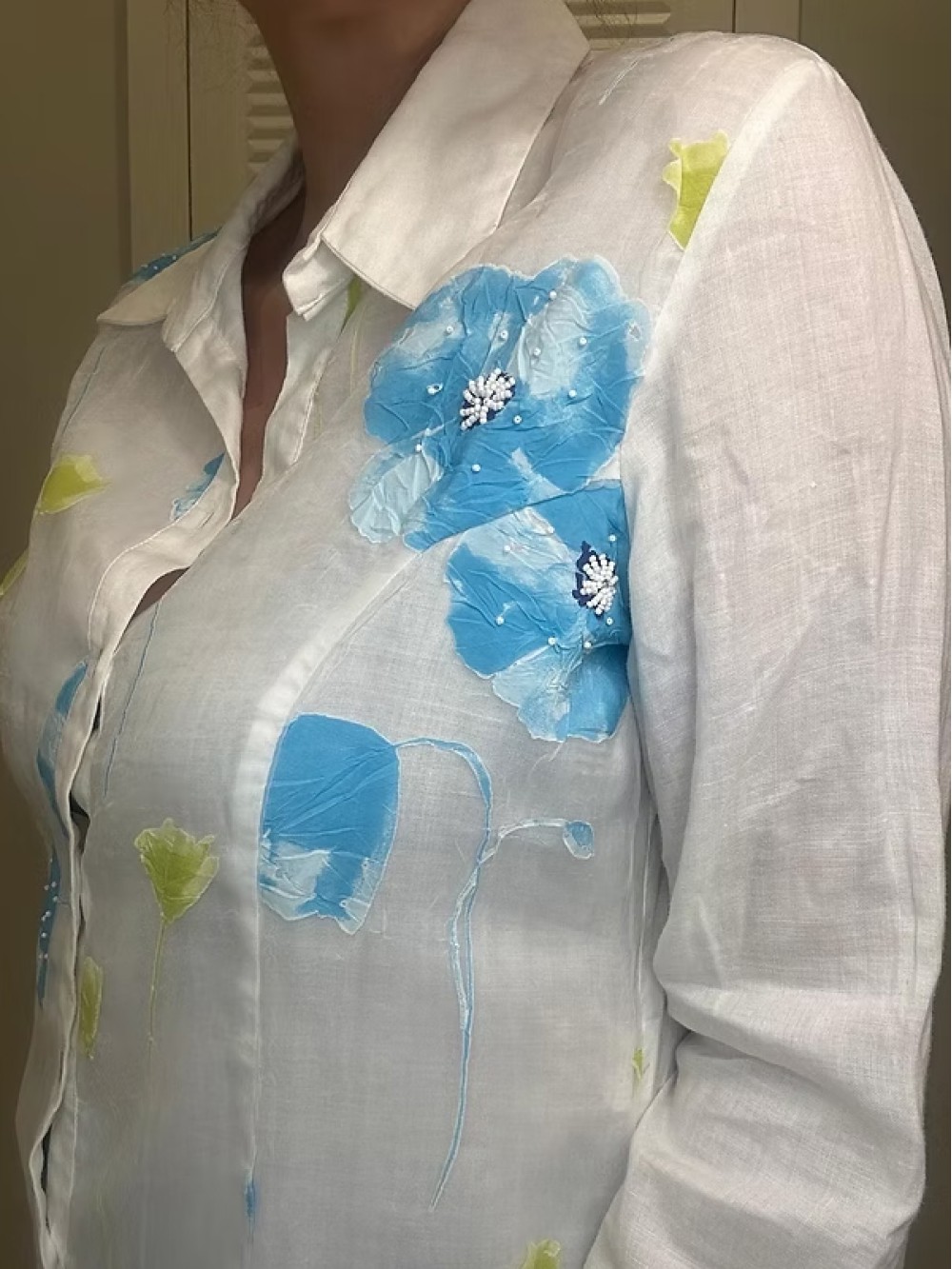 Vintage Keten Tül Üzeri İşlemeli Gömlek