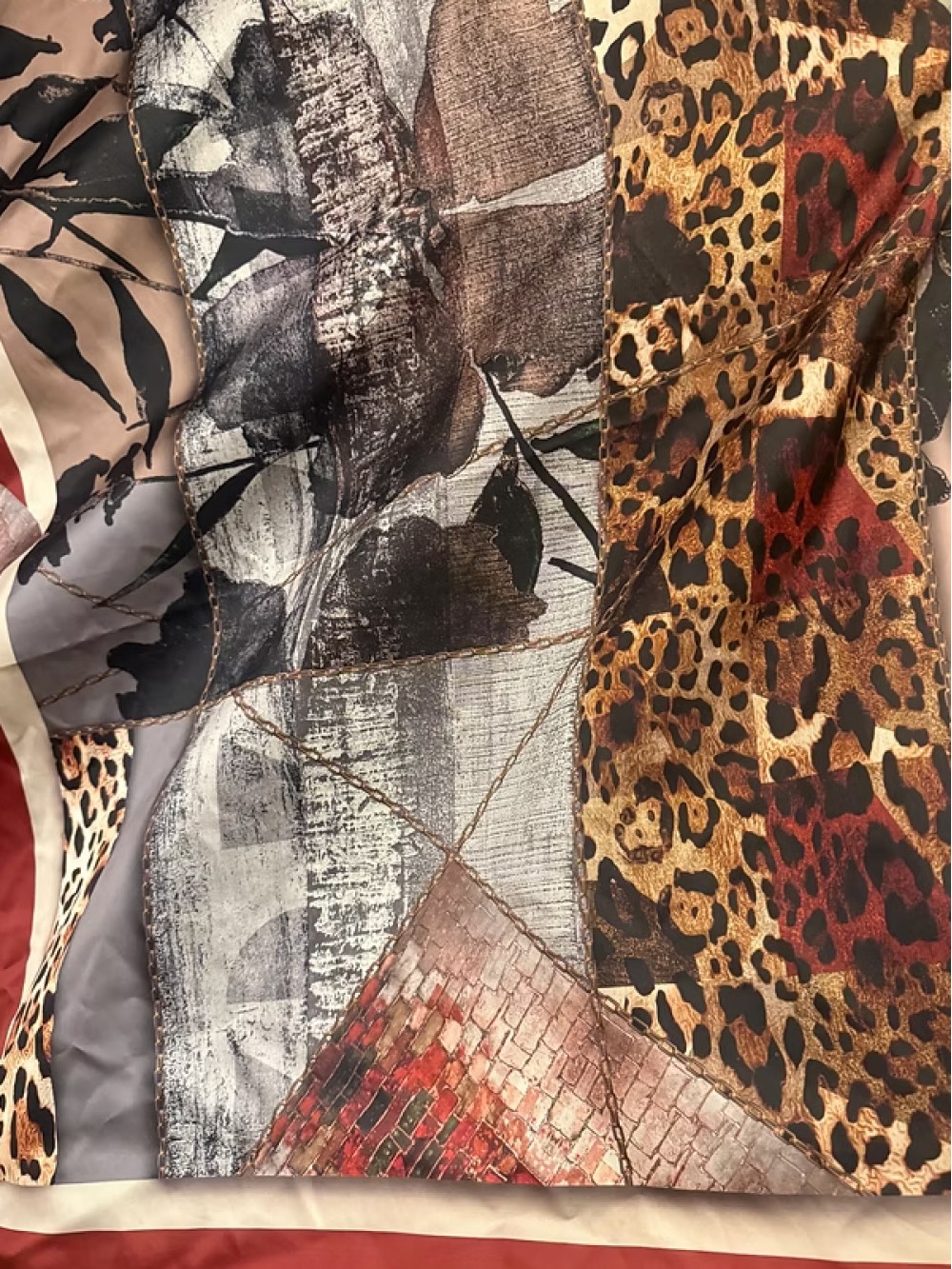 Vintage Leopar ve Soyut desenli Eşarp