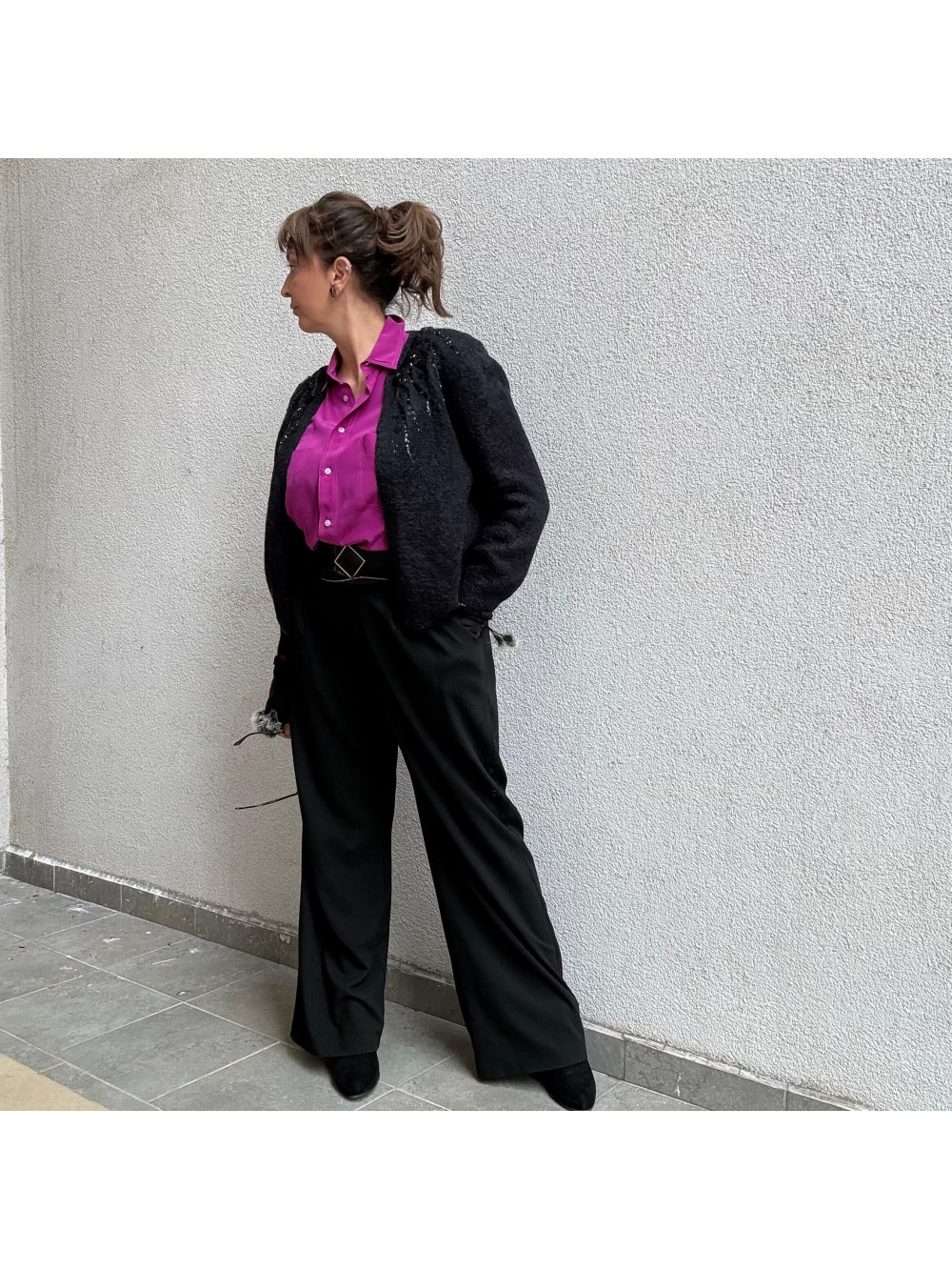 Vintage İnci Düğmeli Tüvit Oversize Ceket