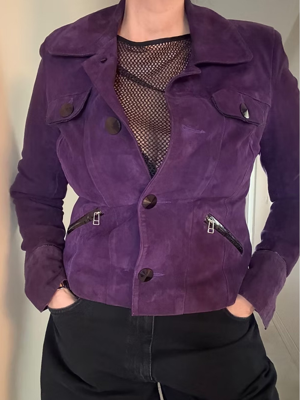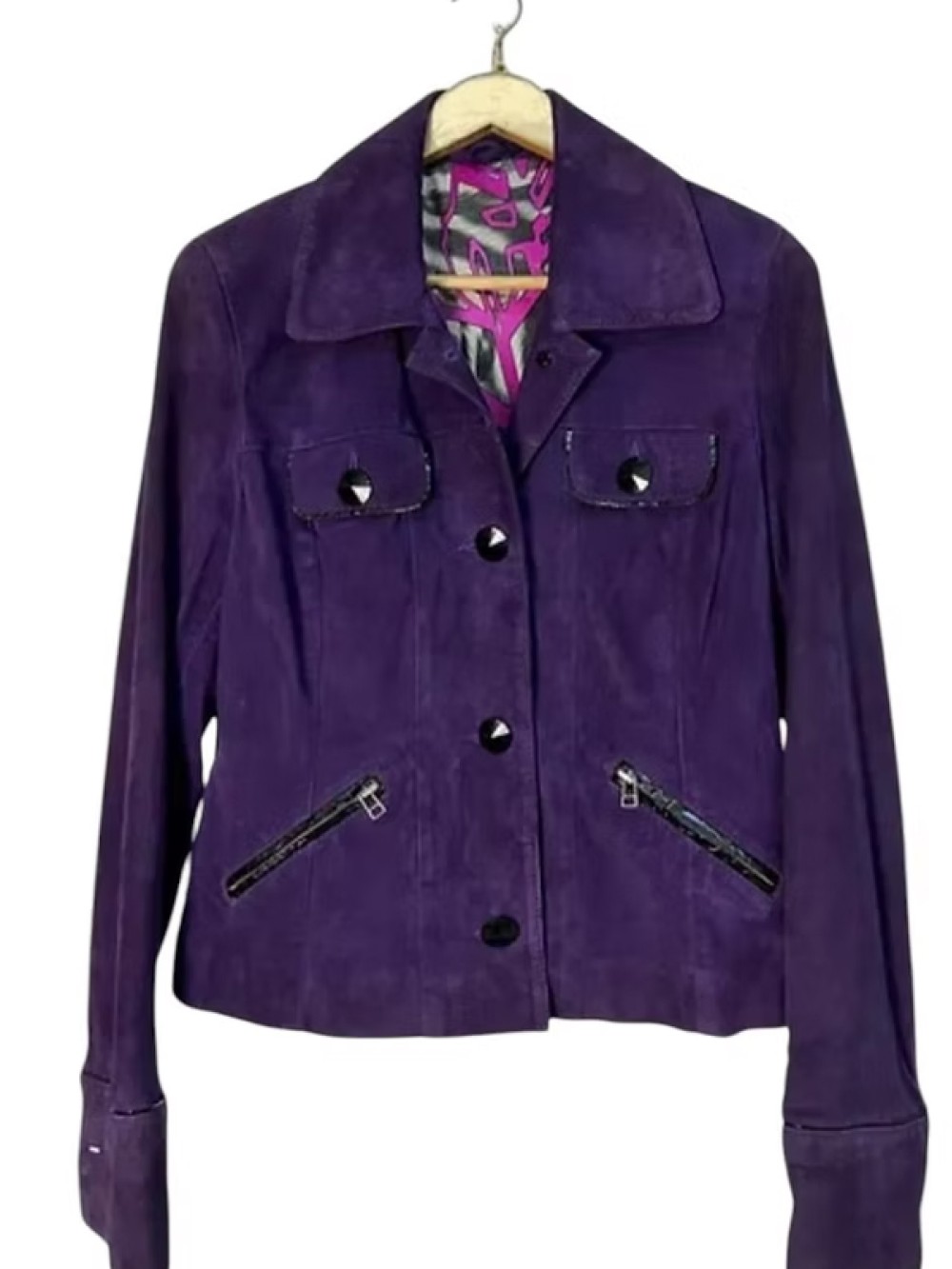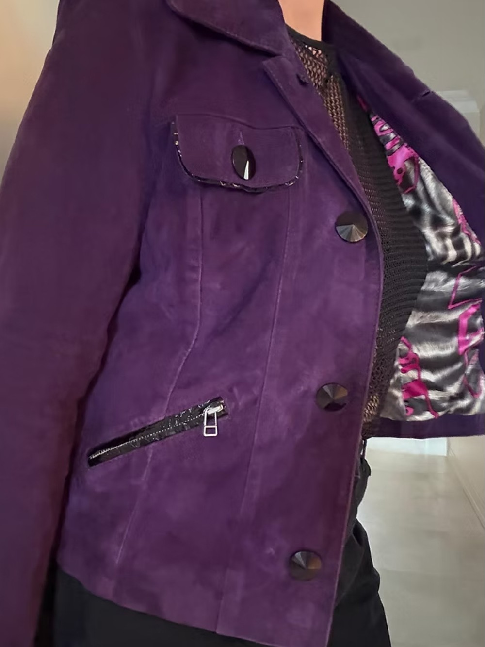 Vintage Saten Astarlı Süet Mor Ceket