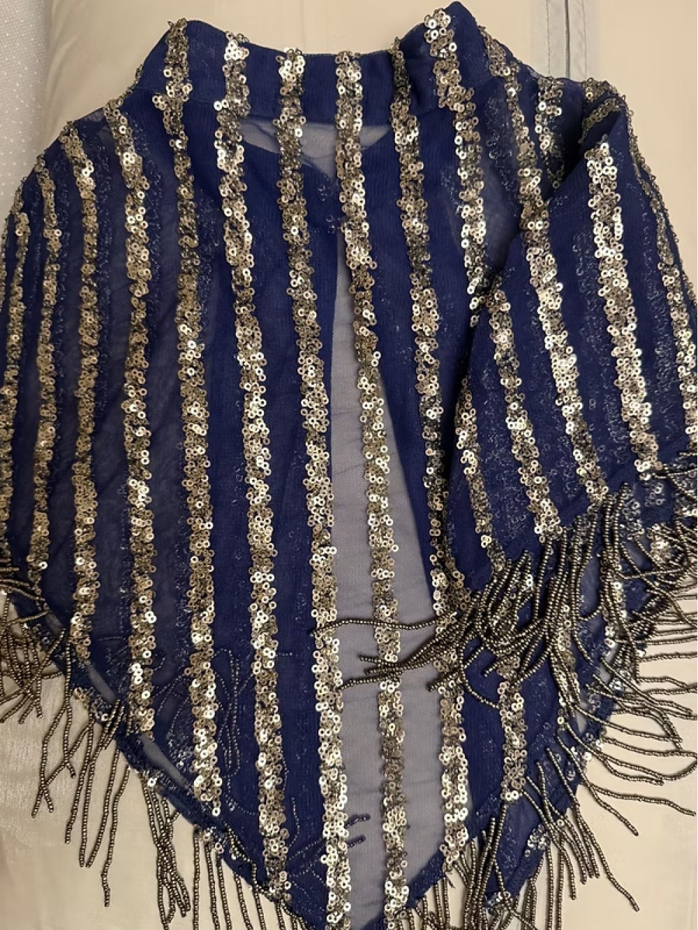 Vintage Tül Üzeri Boncuk ve Pul İşlemeli Bolero
