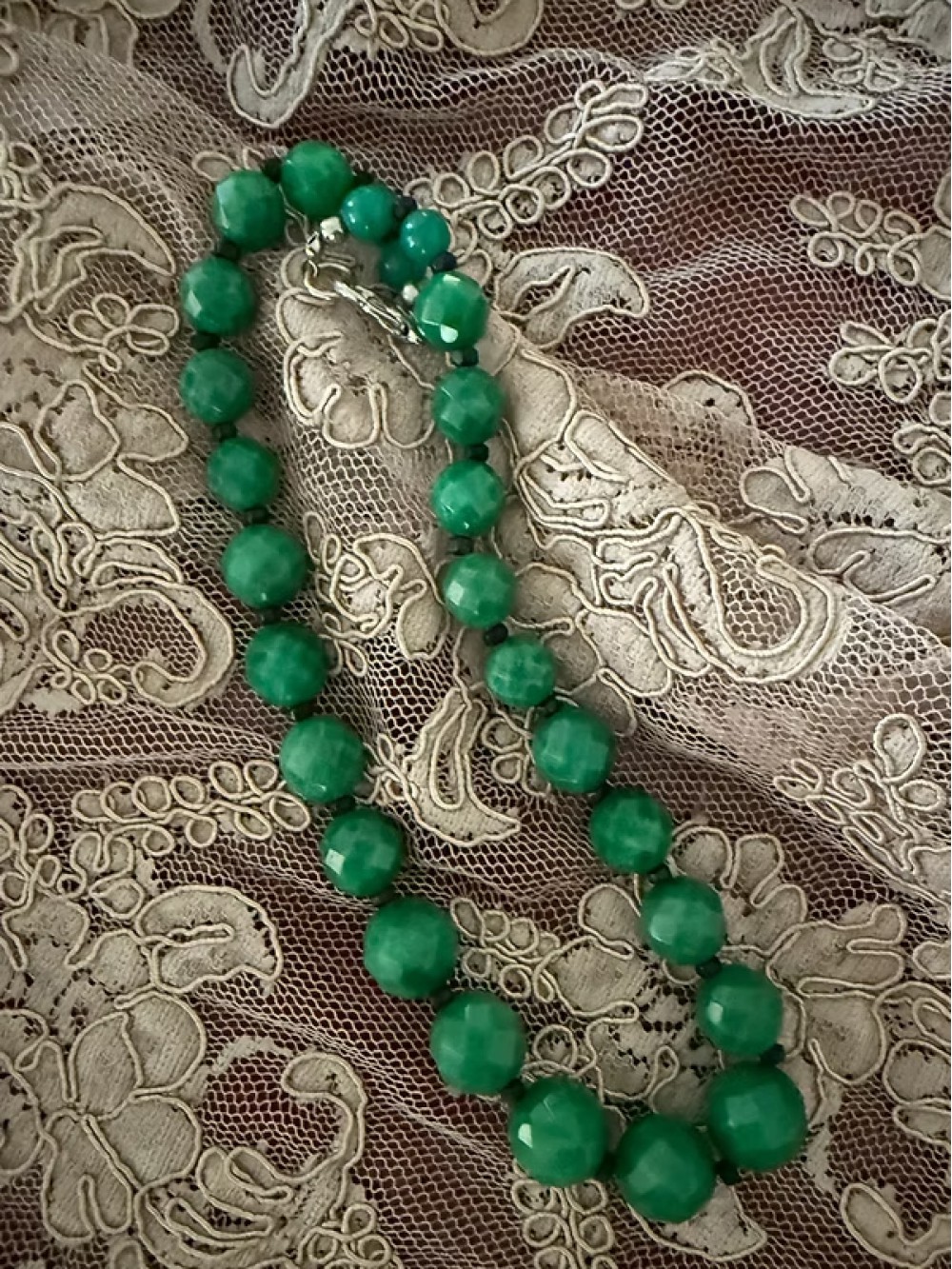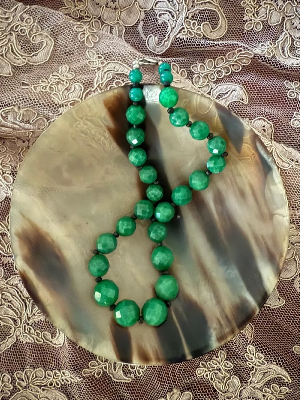 Vintage Yeşim Taşı Köşeli Kesim Kolye